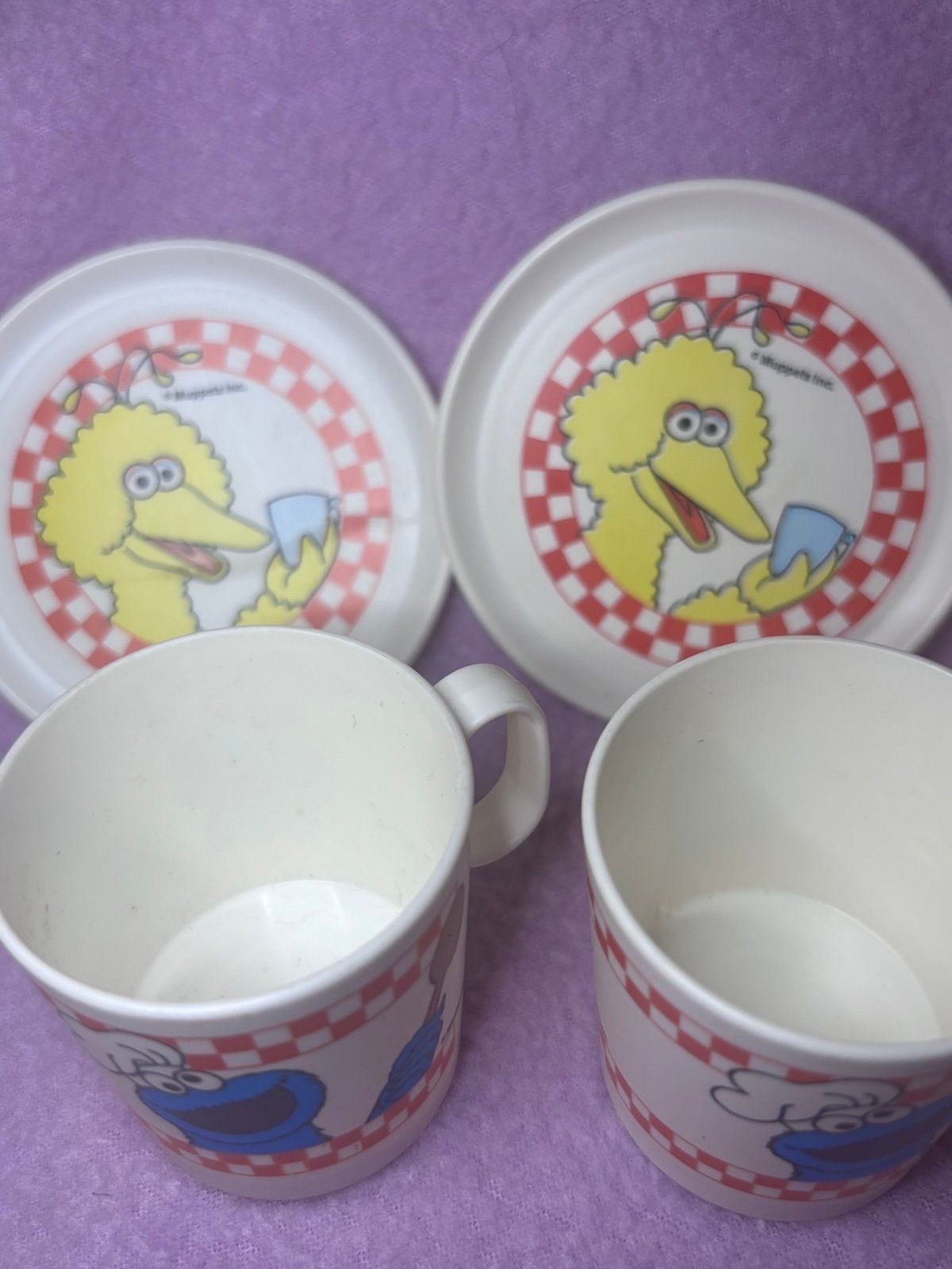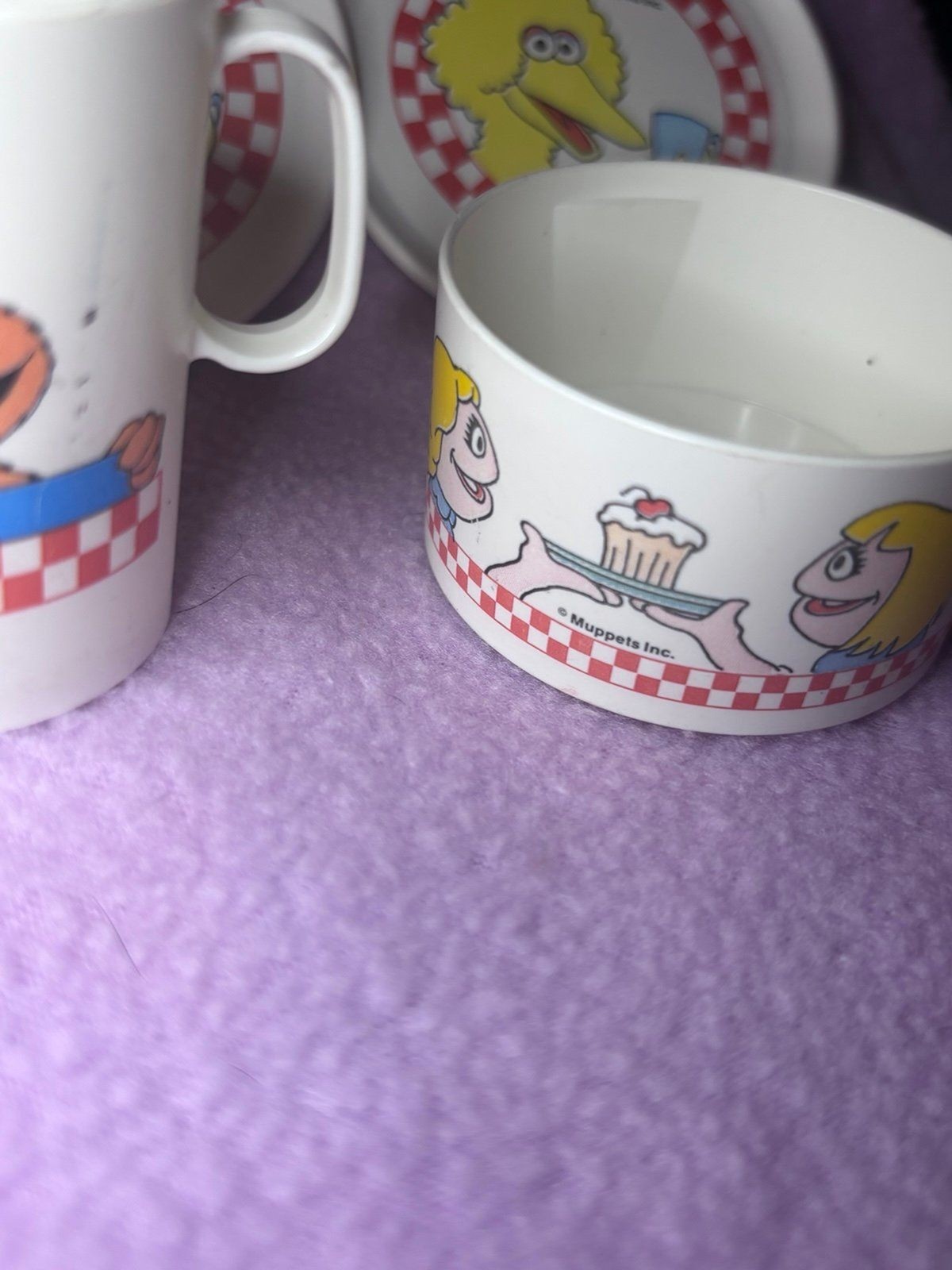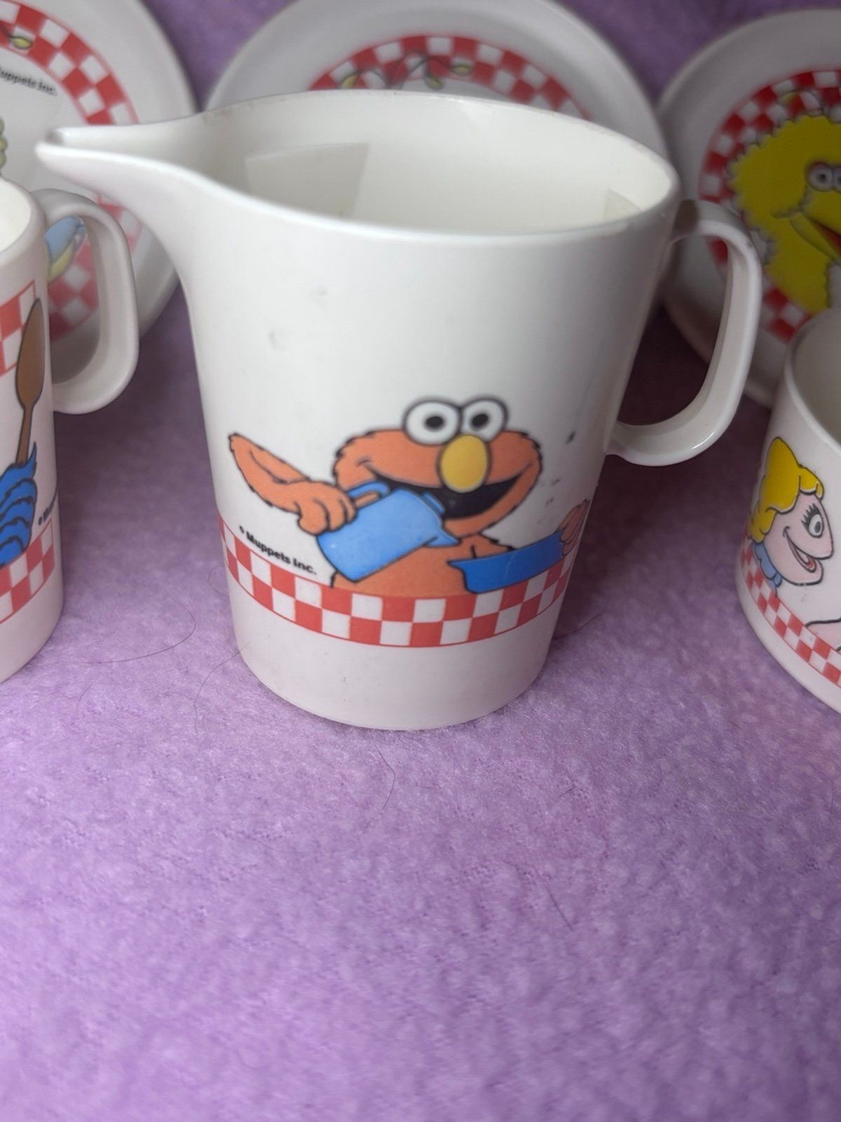 как выглядит Vintage Sesame Street plastic play dish set фото