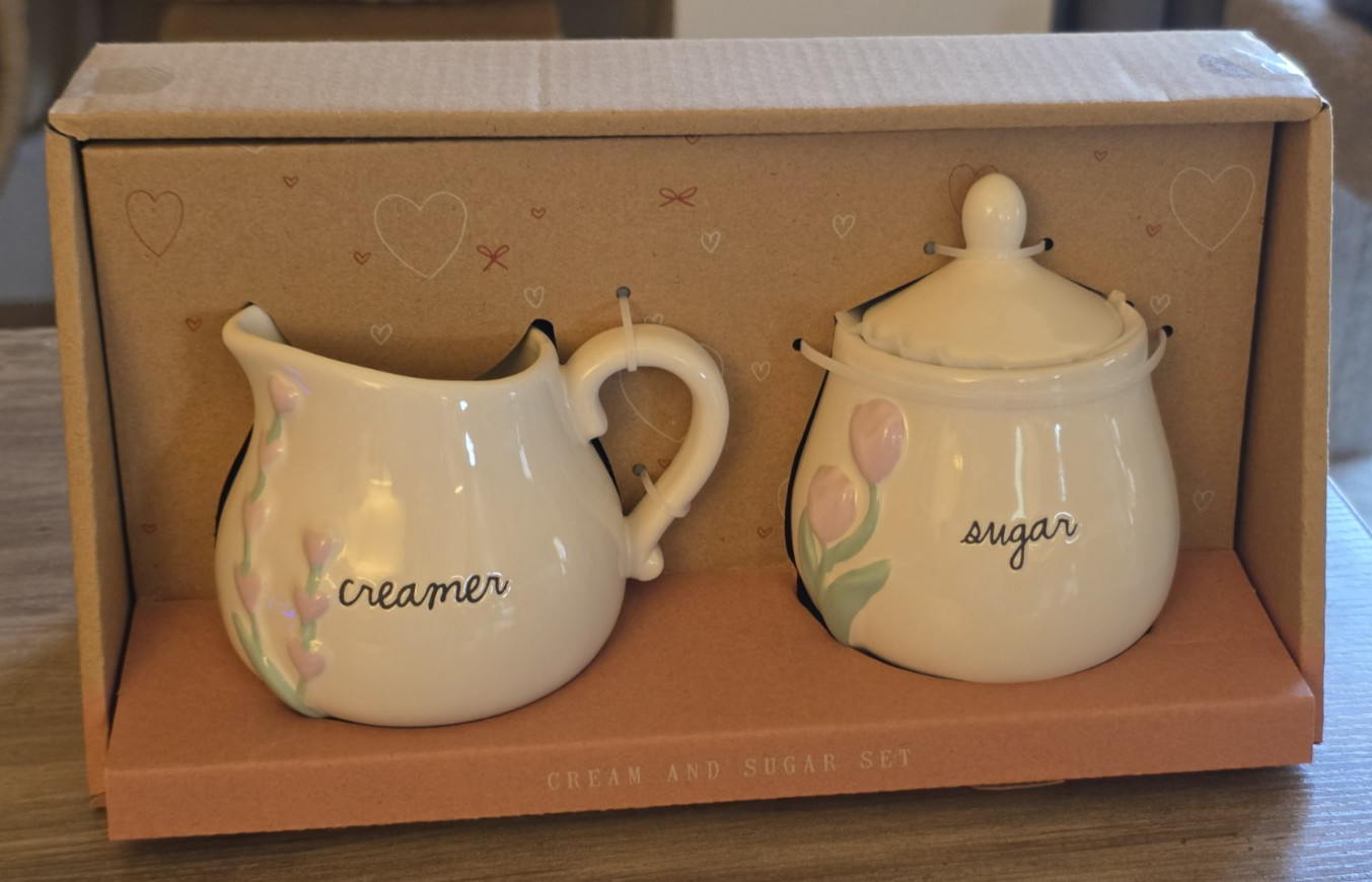 RAE DUNN Artisan Collection By Magenta Ceramic Floral Cream And Sugar Set, New