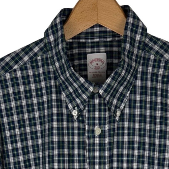 как выглядит Brooks Brothers 346 Mens XL Regular Fit Plaid Button Down Shirt Navy Green фото