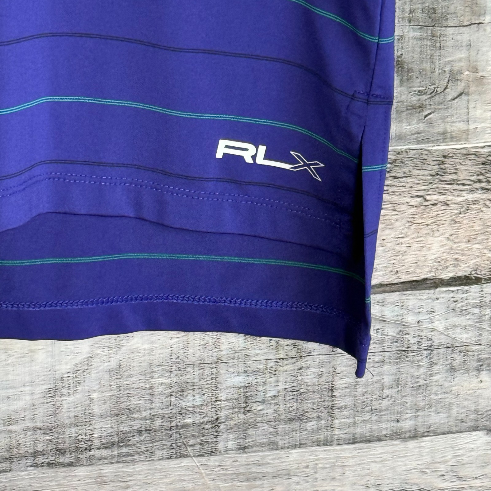 как выглядит RLX Ralph Lauren Mens Polo Shirt Large Purple Striped Performance Preppy Classic фото