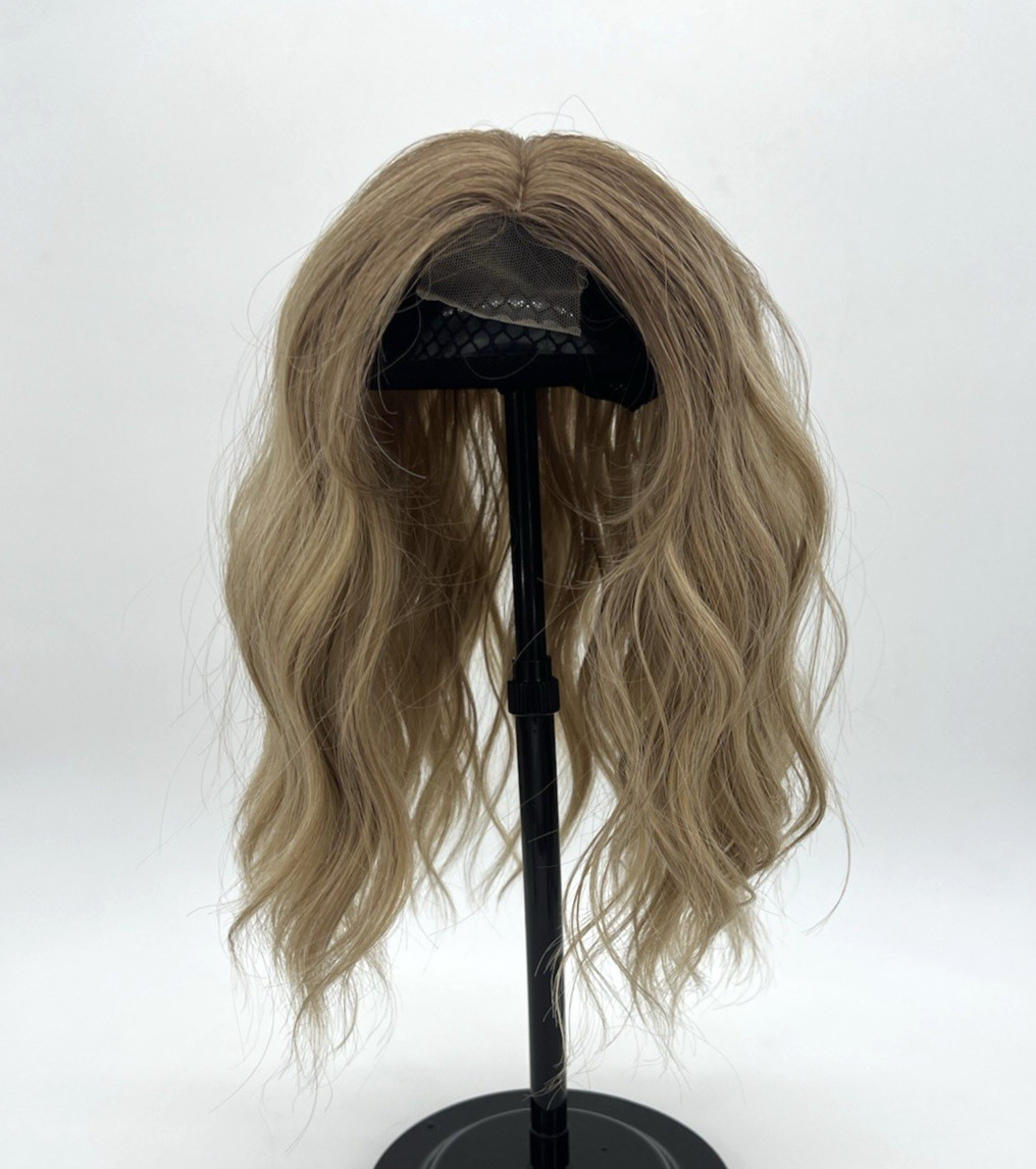 Blonde Mix Brown w/ Side Bangs Short Wavy 11in Women Premium Hair Topper