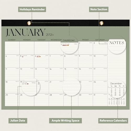2026 Desk Calendar, Large Desktop/Wall Monthly 17x12 Jan 2026-Jun 2027 Green
