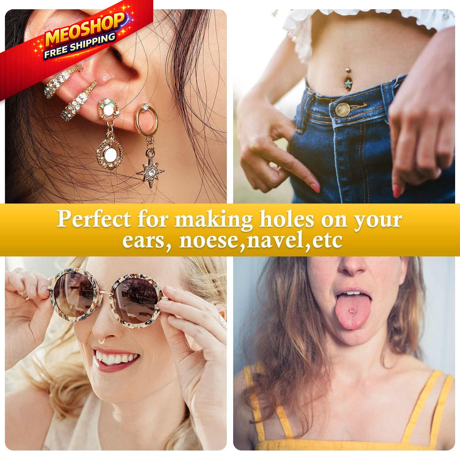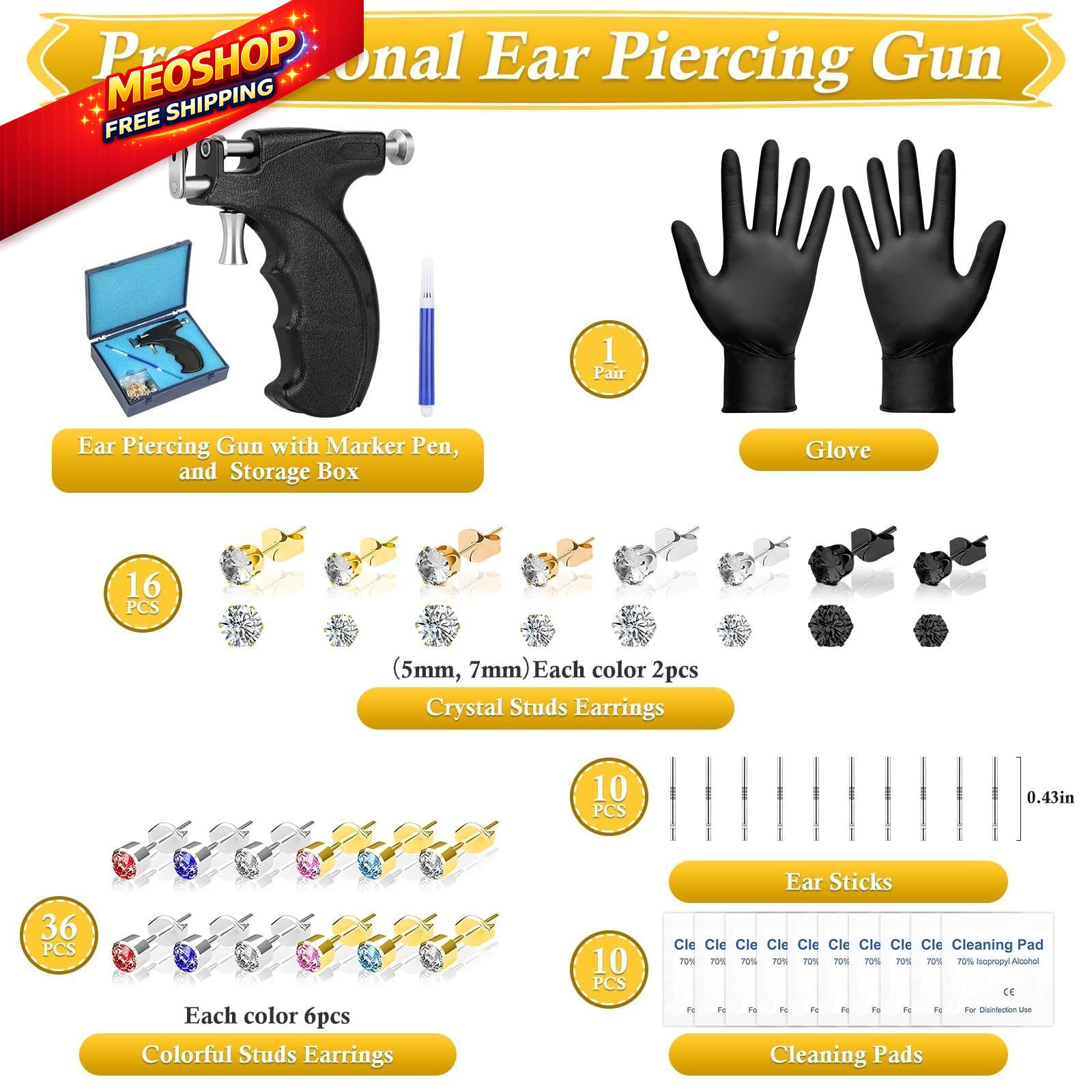 Professional Ear Piercing Gun Kit, Reusable Machine Dark Black