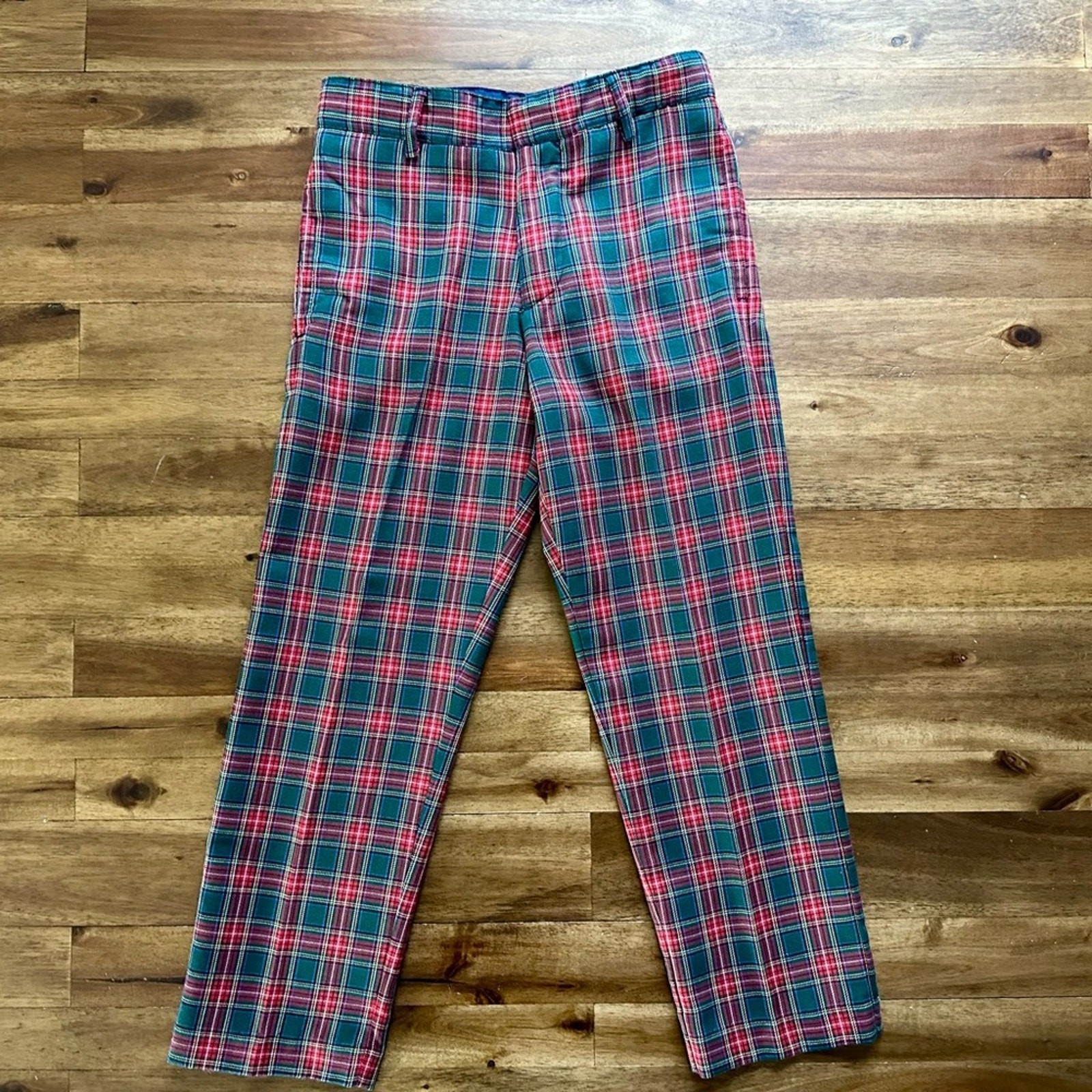 как выглядит Florence Eiseman Navy Green Red Half Zip Sweater Tartan Plaid Pants Set Boys 5 фото
