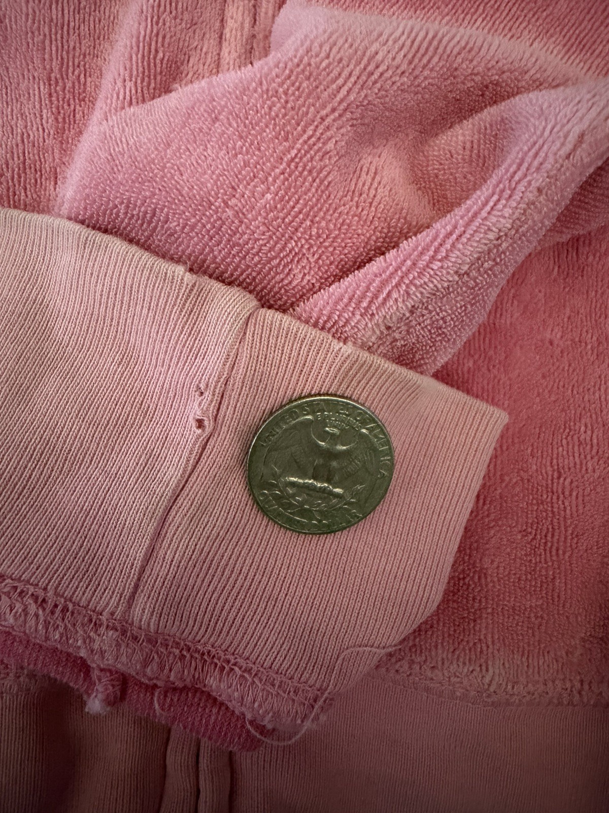 VINTAGE Juicy Couture Pink Terry Cloth Y2K Zip up Hoodie - Made in USA - XL