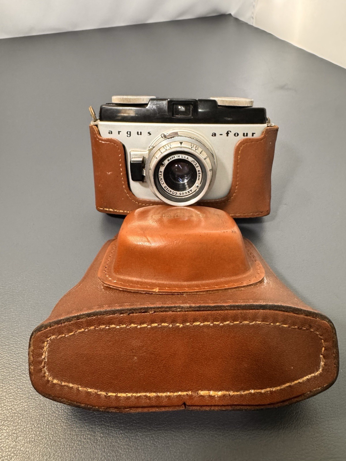 Argus a-four Camera, with Cintar 44 mm, Leather Case, Untested, and has damage.
