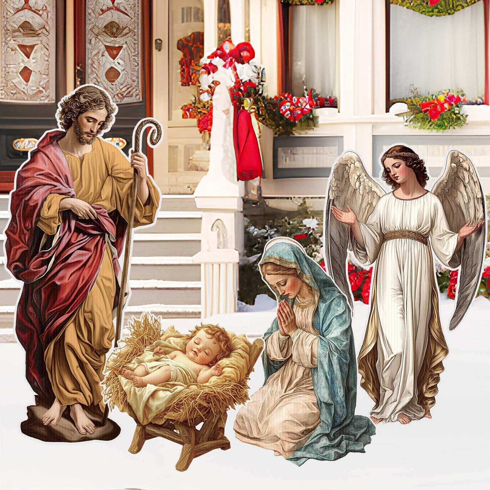 4 Pcs Christmas Nativity Set Outdoor Yard Signs with Stakes for Manger Scene...