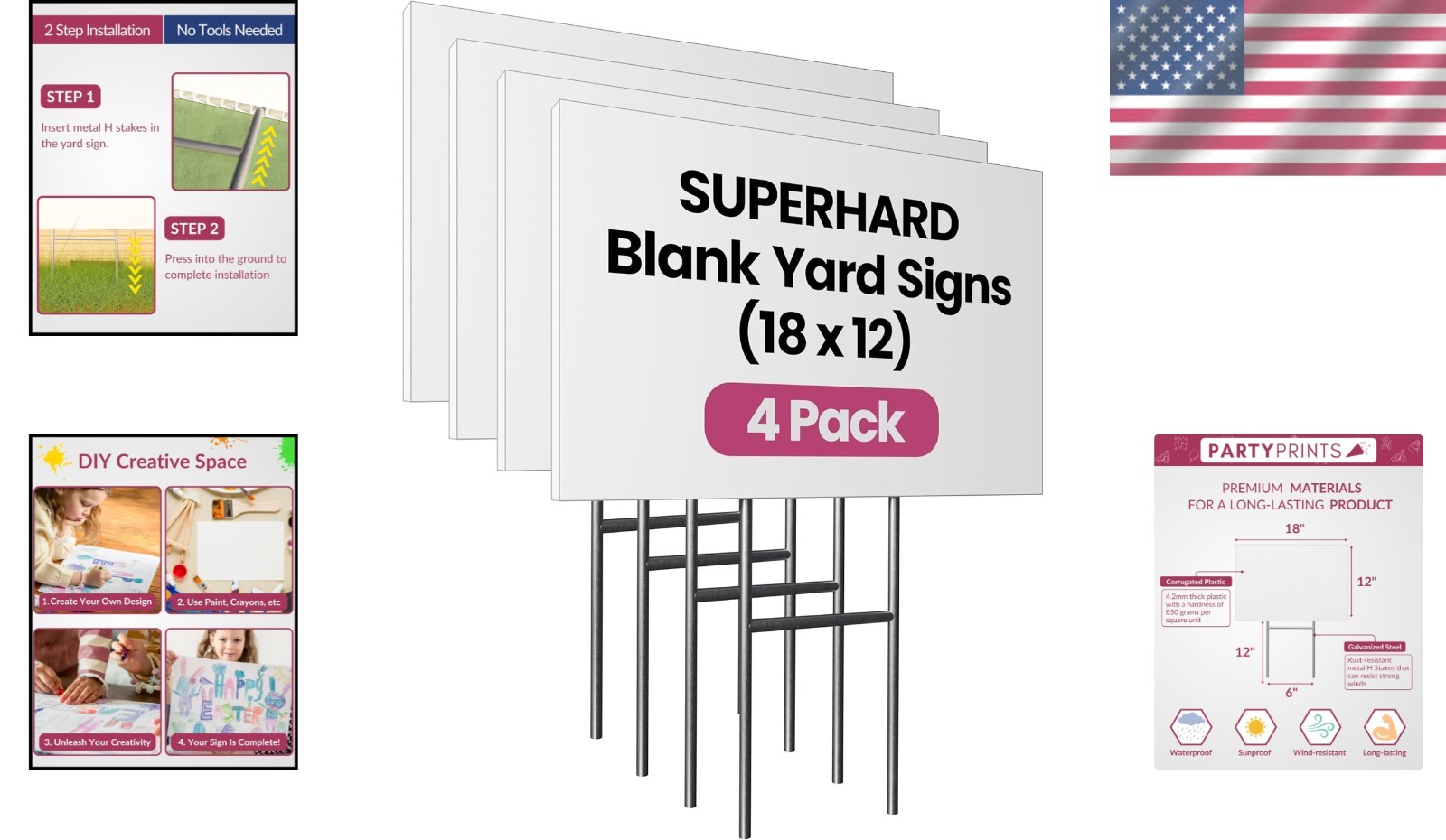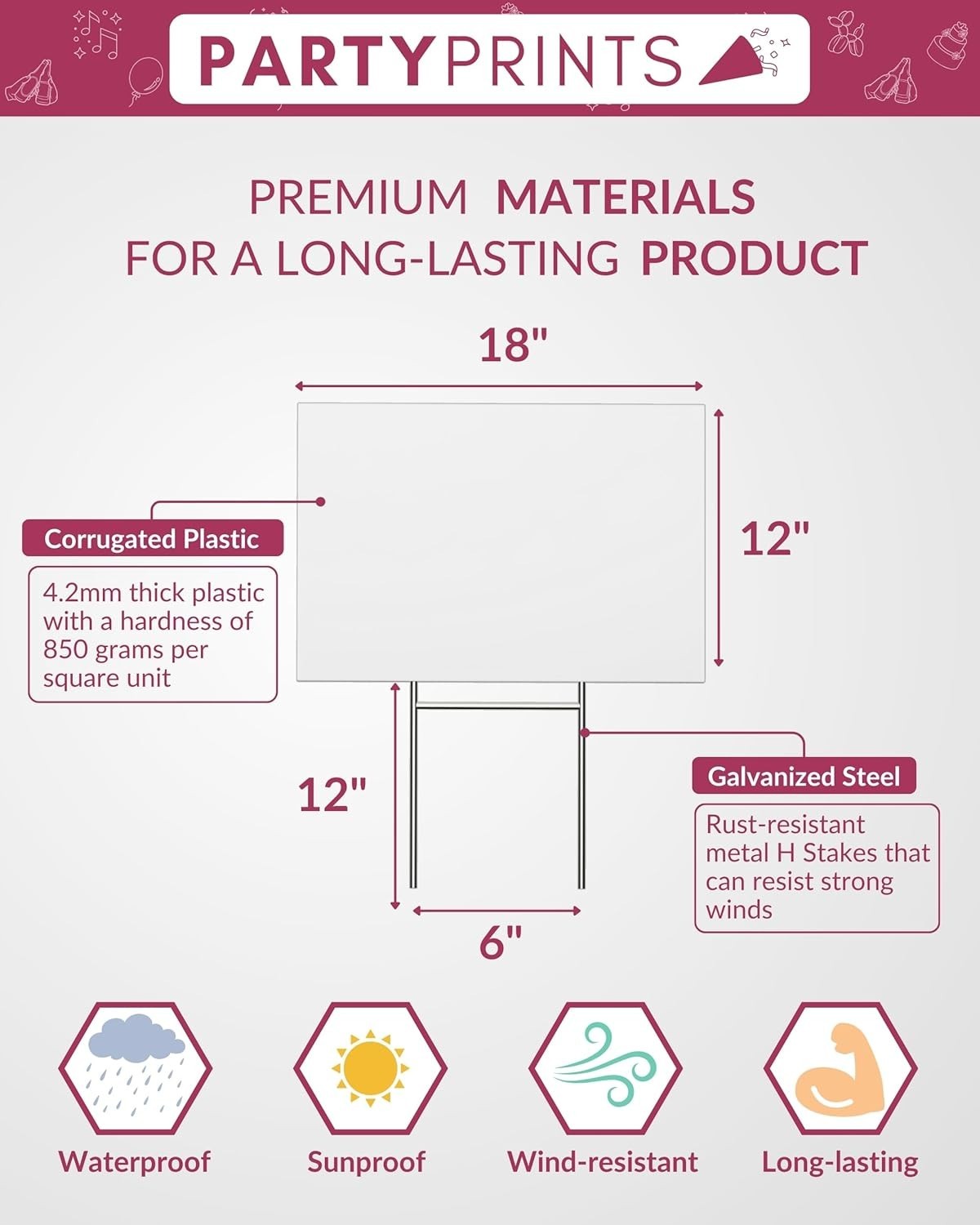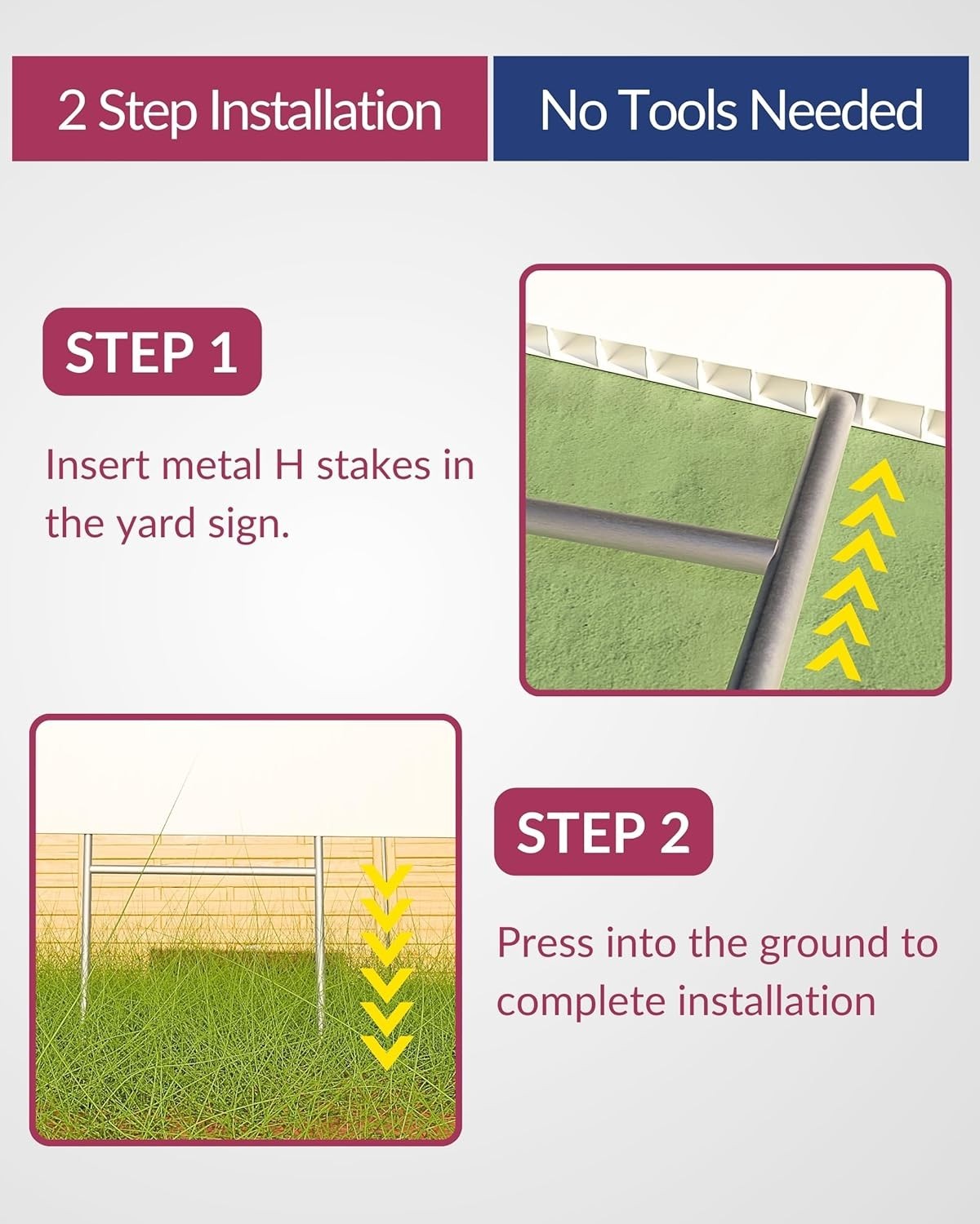4-Pack 18x12 Waterproof Yard Signs with Metal Stakes for Events Advertising