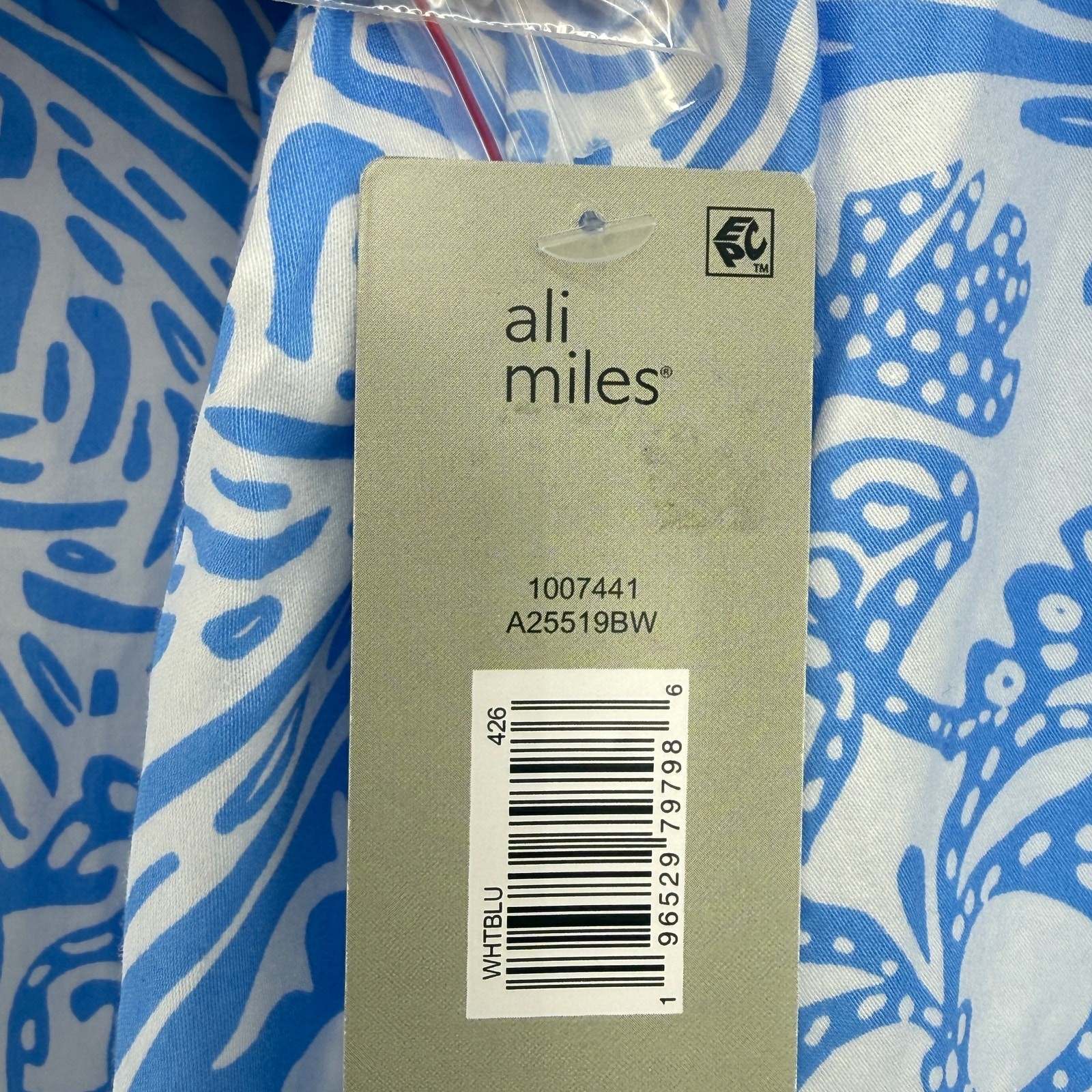Ali Miles Blue White Medallion Print Shirt Plus Size 3X Tunic Top