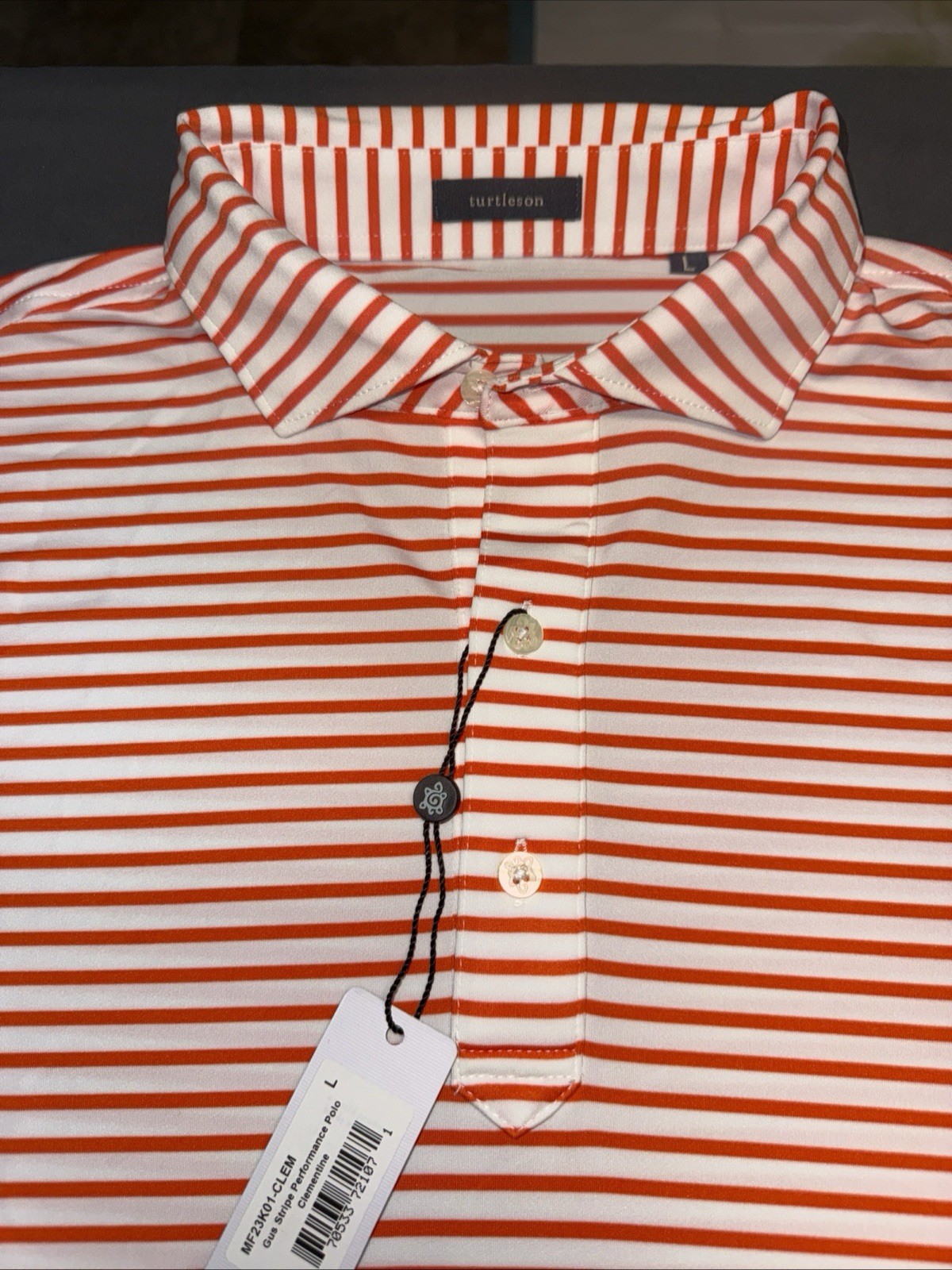 NEW Turtleson mens polo golf shirt LARGE Orange White stripe short sleeve