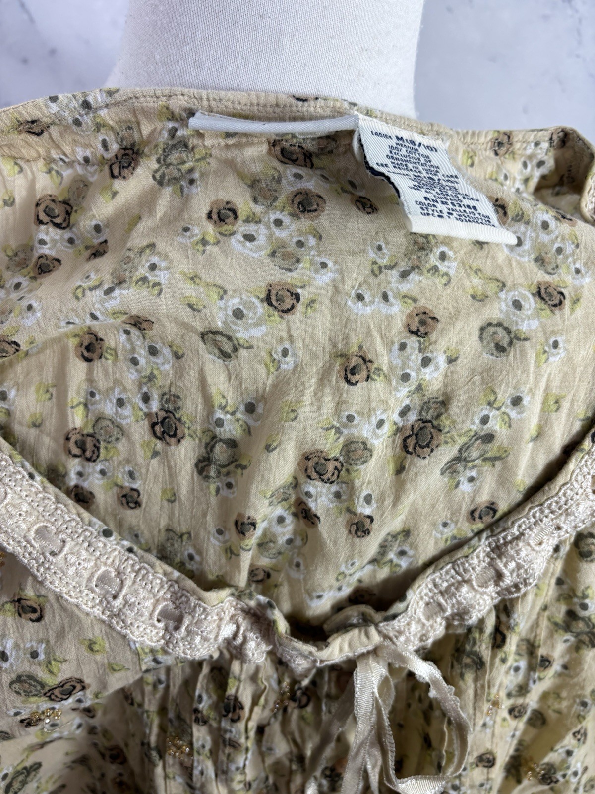 как выглядит Vintage Cottagecore Floral Button Tank Top Yellow Eyelet Lace Fairy Coquette M фото
