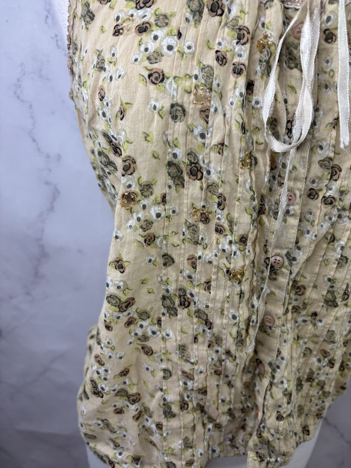 Vintage Cottagecore Floral Button Tank Top Yellow Eyelet Lace Fairy Coquette M