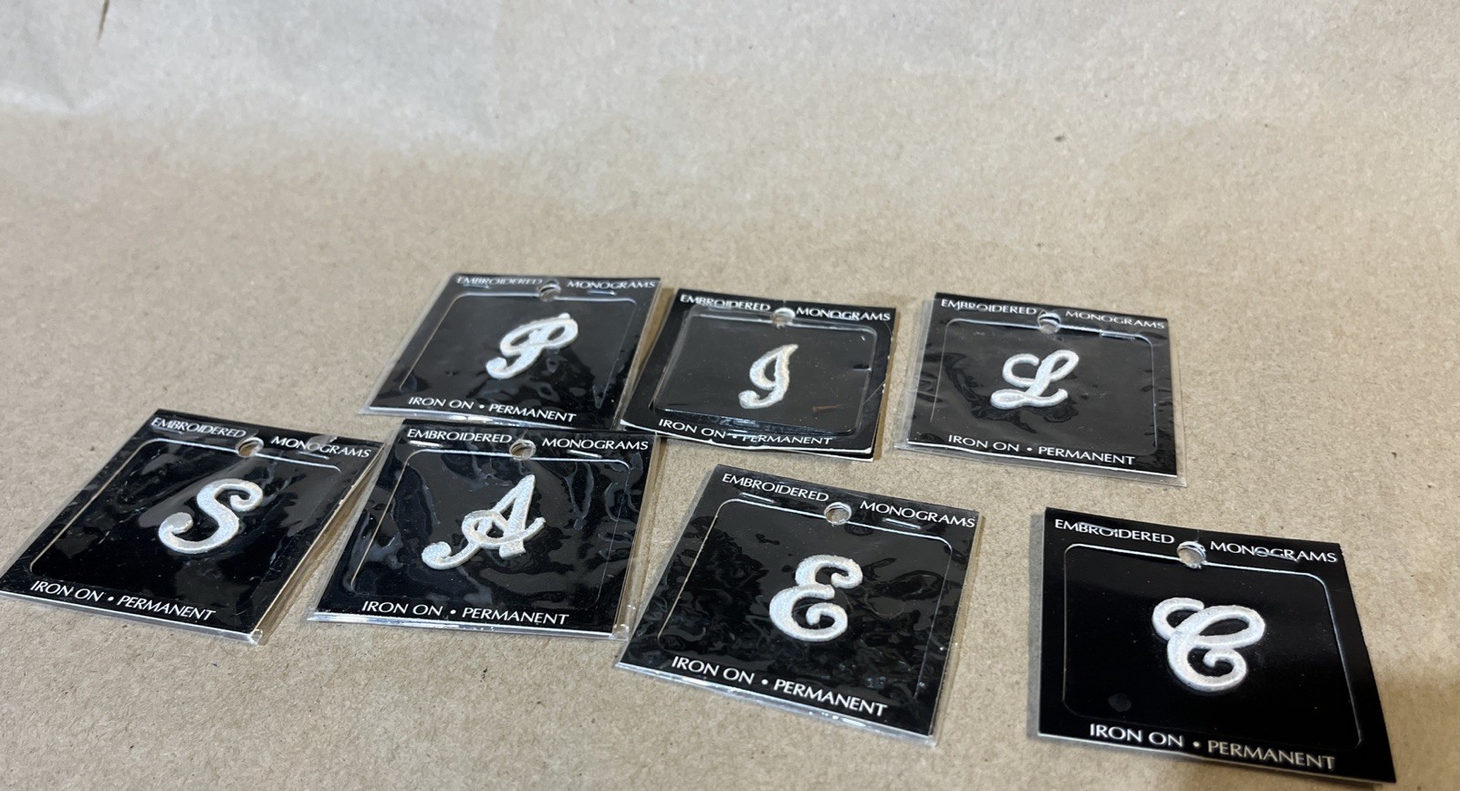 Lot of 7 - Embroidered Monograms Various Letter Iron on Patches