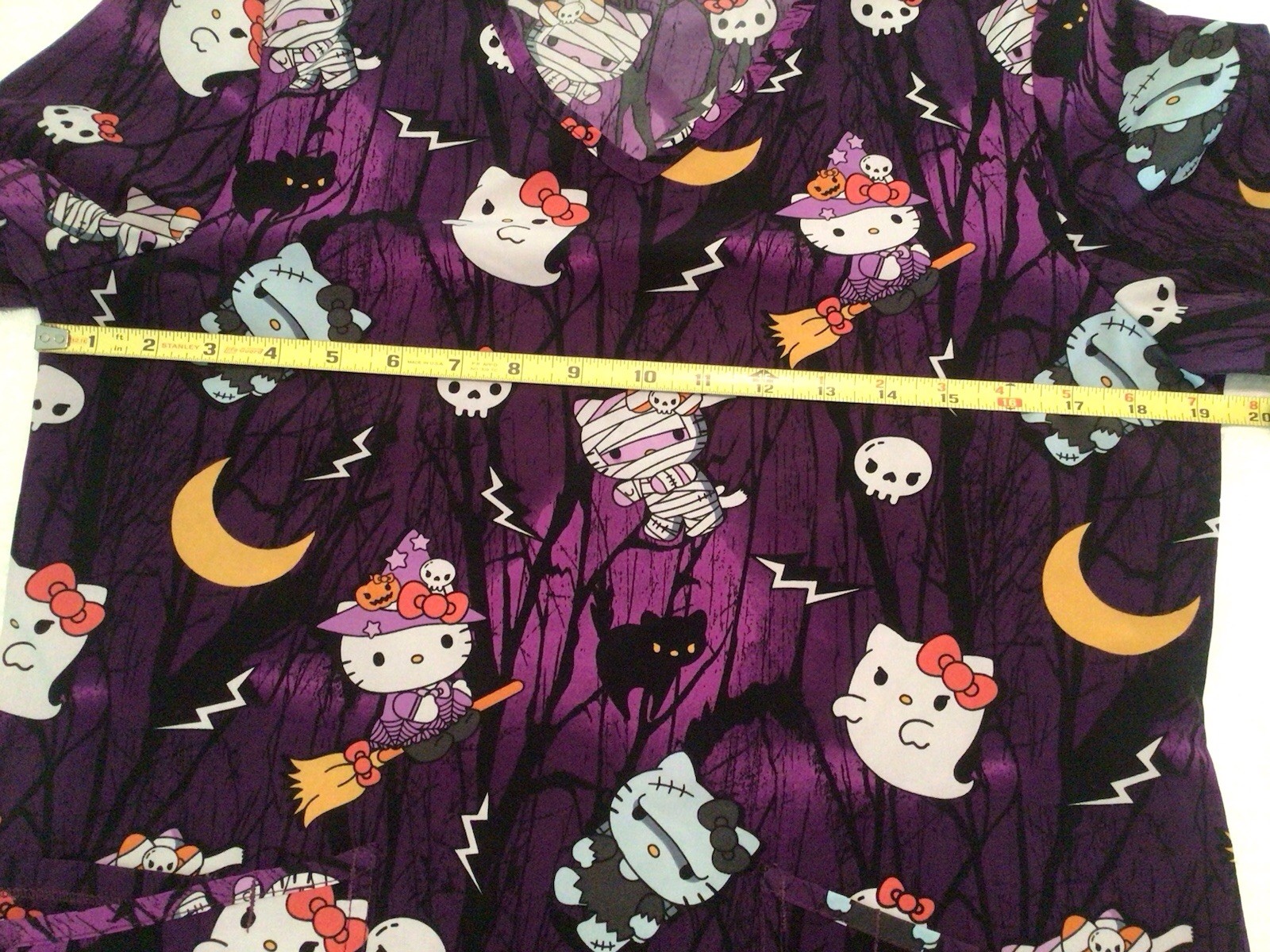 Hello Kitty Halloween Ghost Zombie Witch Cat Skull V-Neck Scrub Medium See Desc.