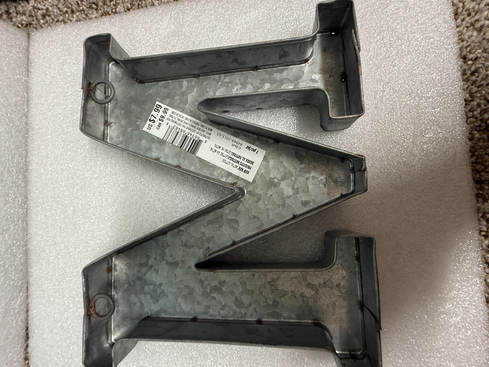 Galvanized Metal Letter M 6 x 8 Rustic Country Industrial Farmhouse 3D NEW