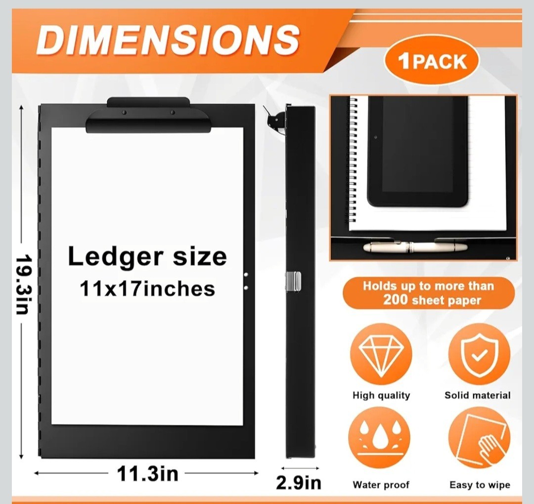 Clipboard with Storage 11 x 17 Inch-Aluminum