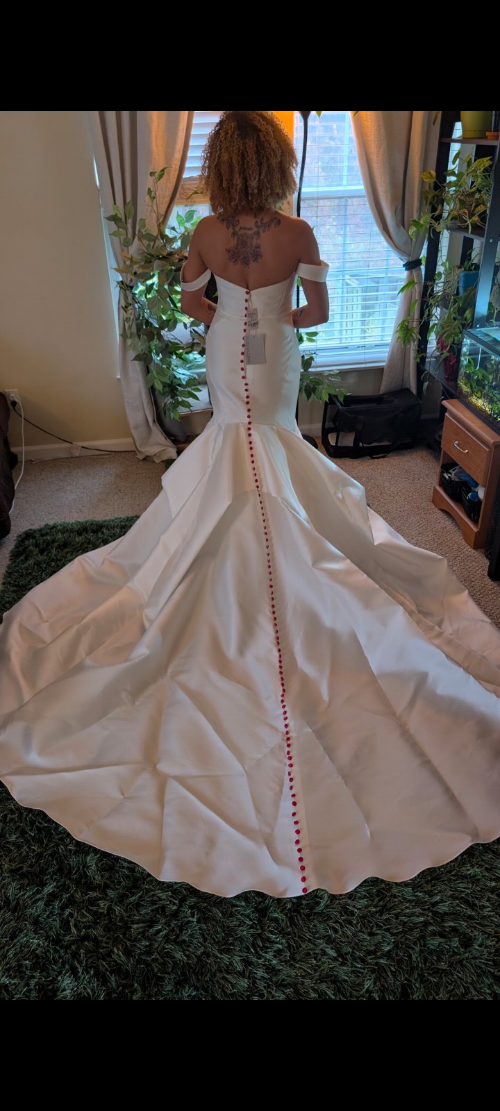 как выглядит Martina Liana Wedding Dress White Off Shoulder Red Buttons Size 10 фото