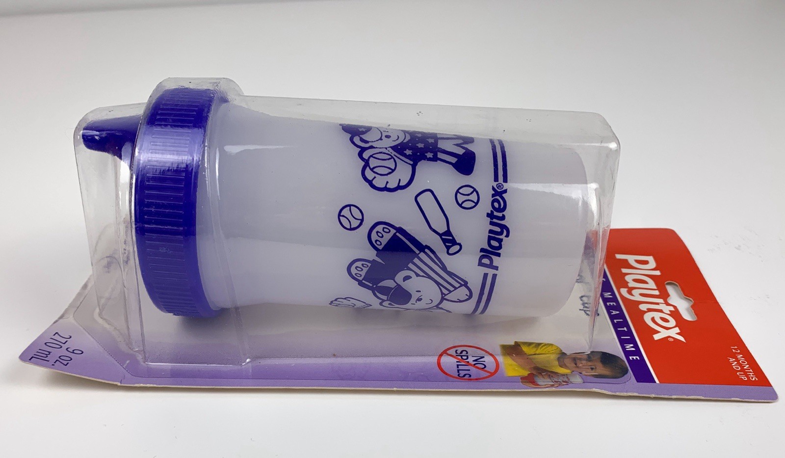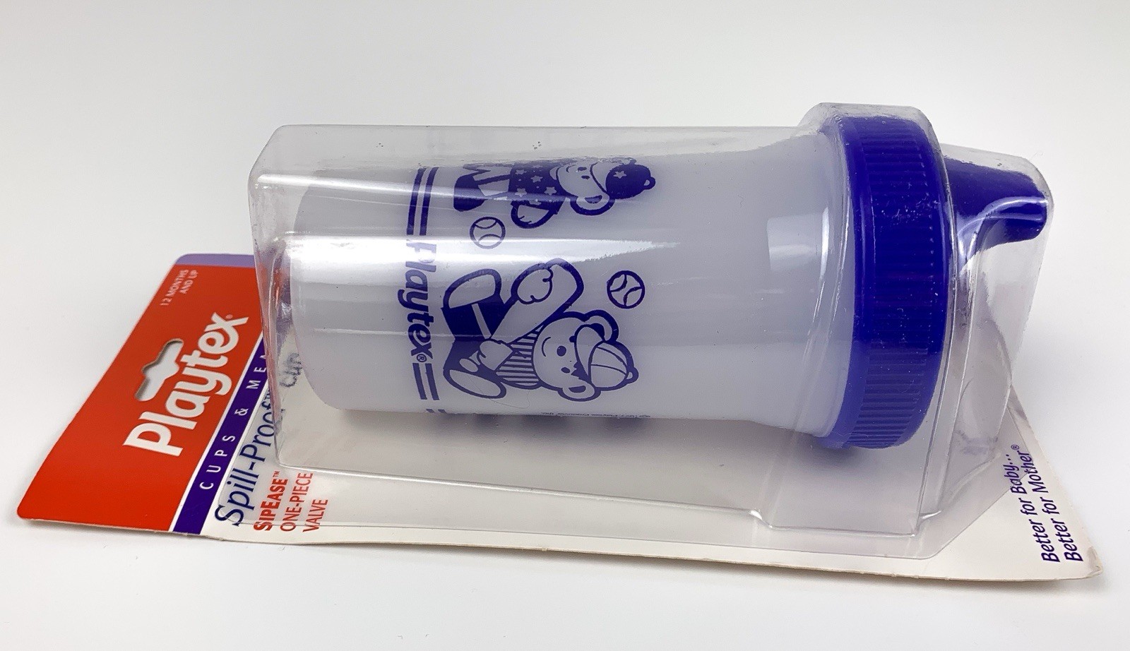 как выглядит Playtex Spill Proof Sippy Cup 9 Oz Bear Baseball White Blue New Vintage 1997 фото