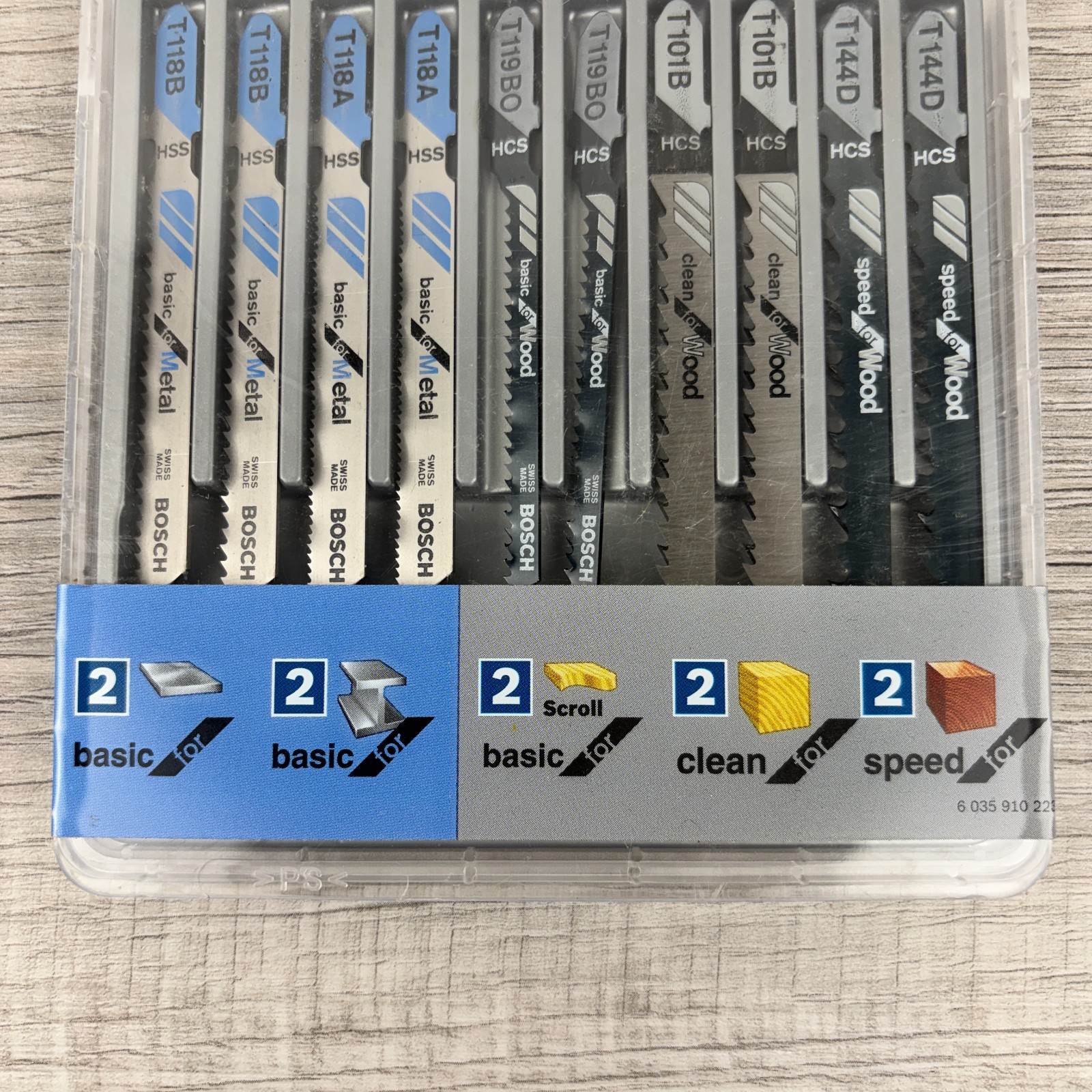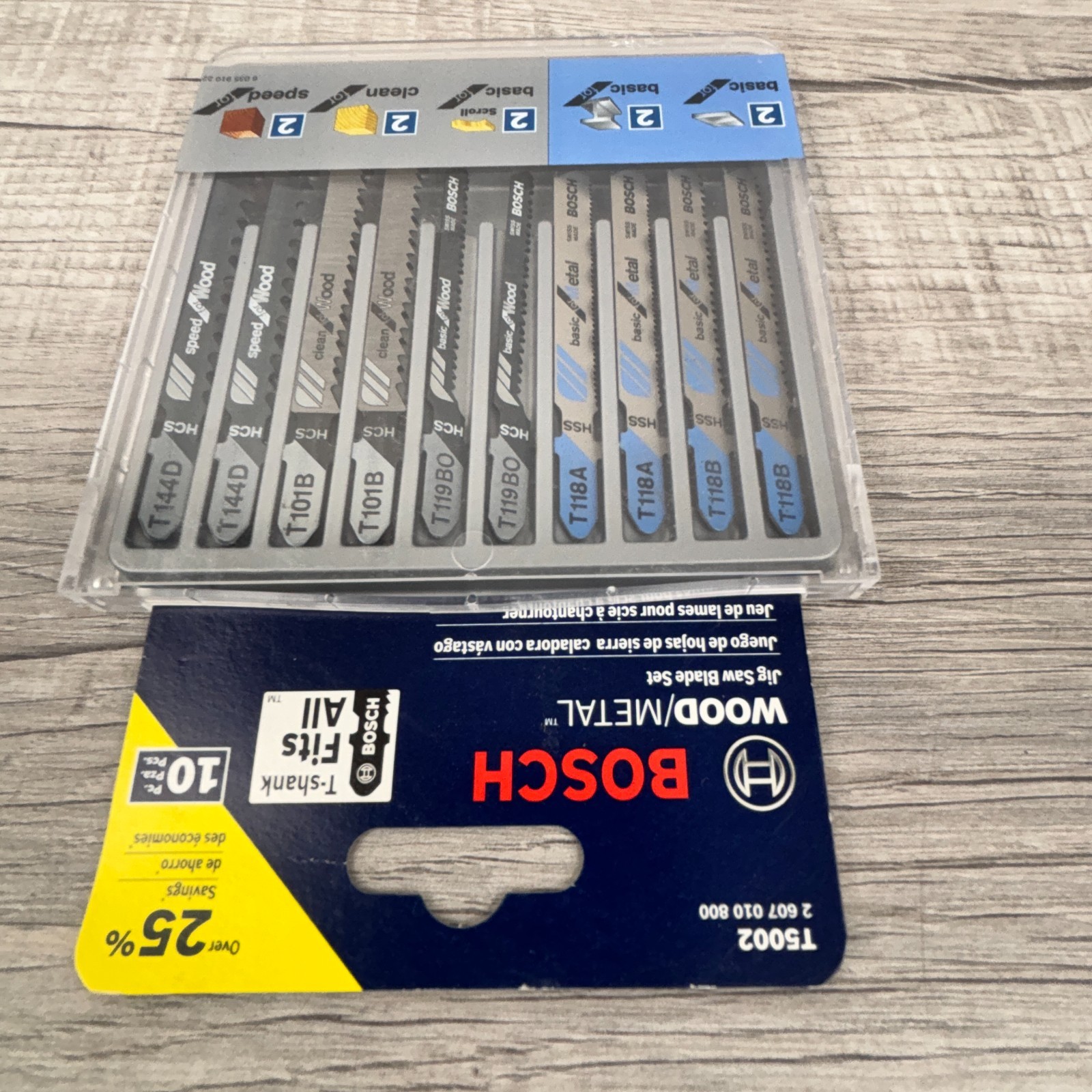 как выглядит BOSCH 10 PC Jig Saw Blade Set T5002 T-Shank WOOD/METAL Basic/Clean/Speed фото