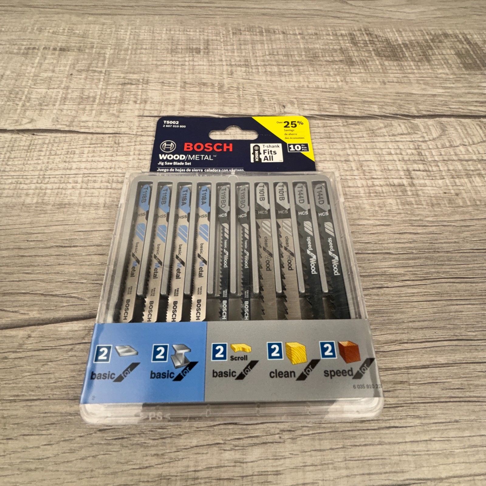 BOSCH 10 PC Jig Saw Blade Set T5002 T-Shank WOOD/METAL Basic/Clean/Speed