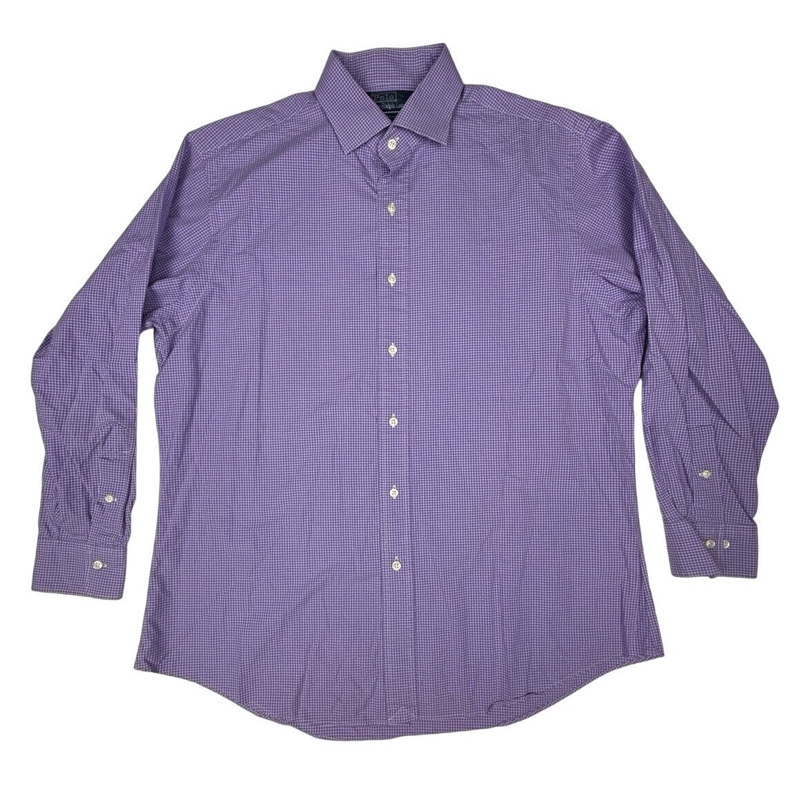Polo Ralph Lauren Dress Shirt Purple Check Regent Custom Fit Mens 17 32/33 XL