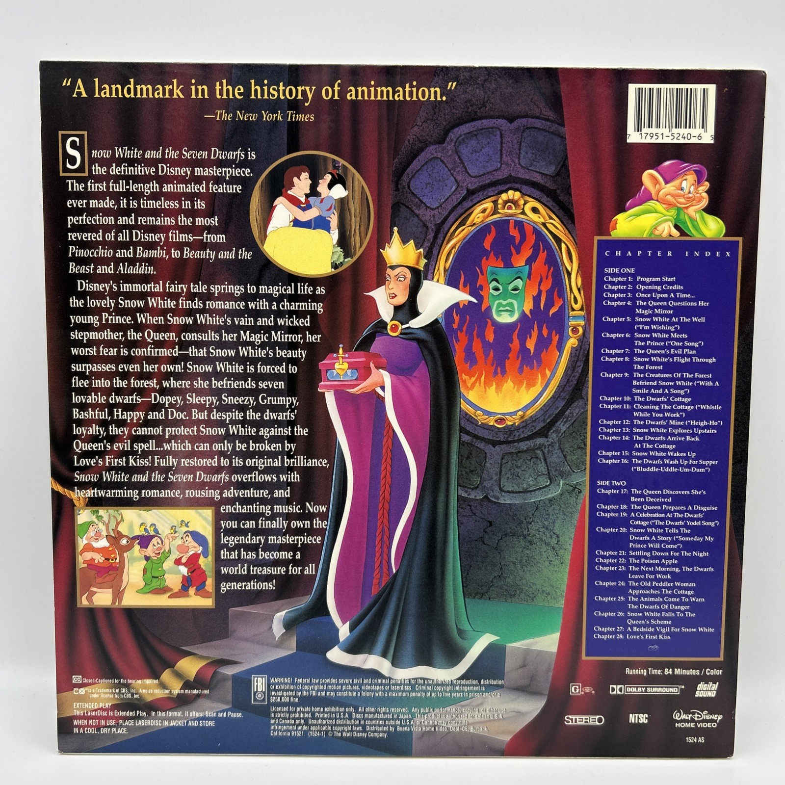 Snow White And The Seven Dwarfs Laserdisc Walt Disney's Masterpiece