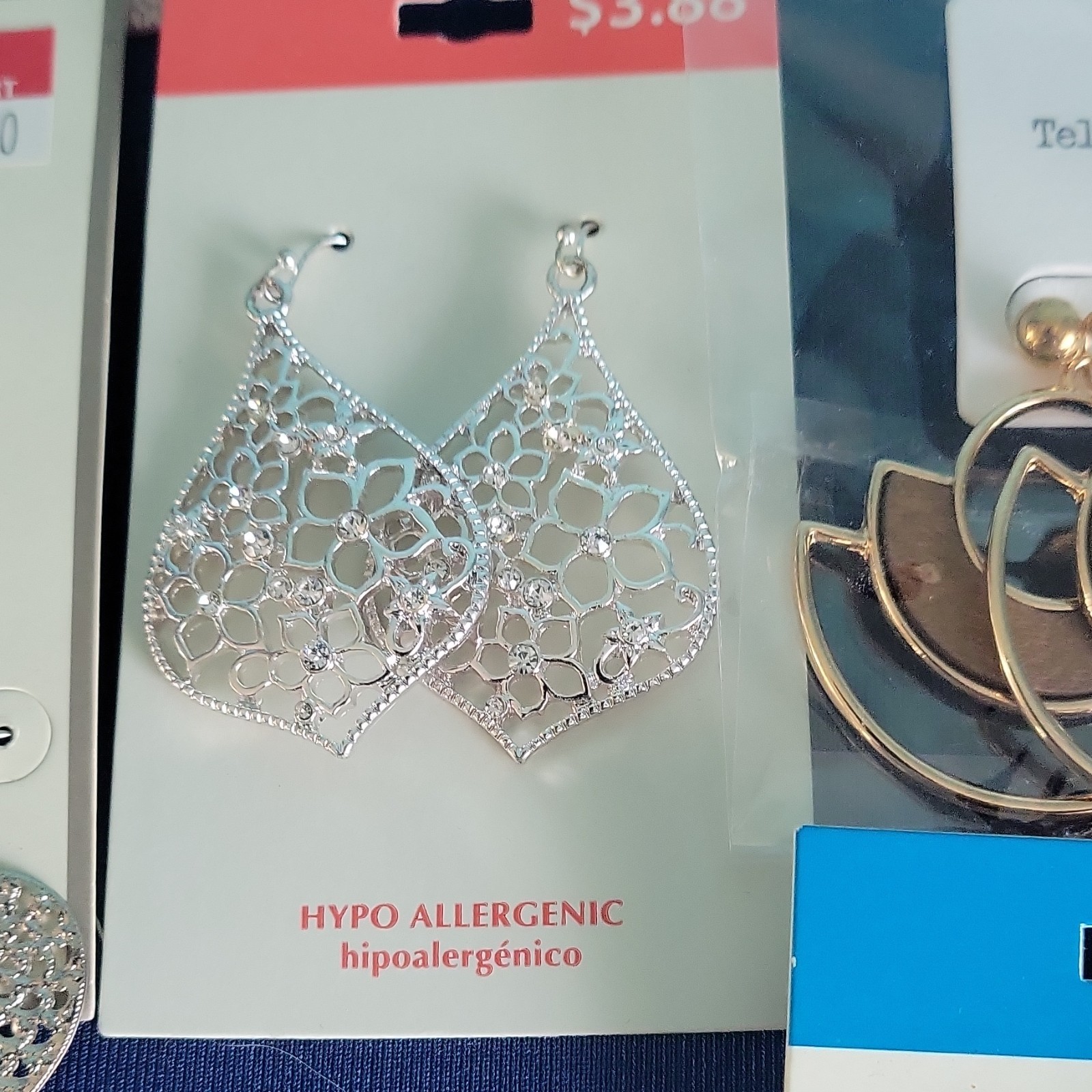 как выглядит Paparazzi Hypoallergenic Dangle Stud Earrings Lot Cubic Zirconia Floral фото