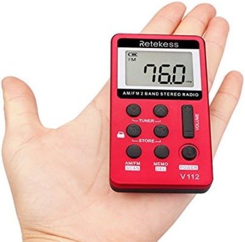 Red Portable AM FM Radio Digital Tuning, Rechargeable, Earphone Use, Lock B...
