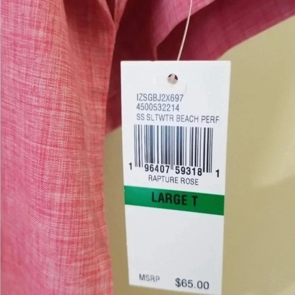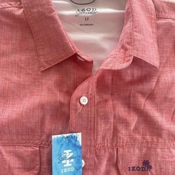 как выглядит Izod Saltwater Beach Performance Surfside Short Sleeve Shirt Mens Light Pink NEW фото
