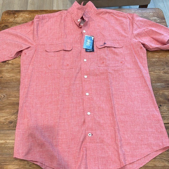 Izod Saltwater Beach Performance Surfside Short Sleeve Shirt Mens Light Pink NEW