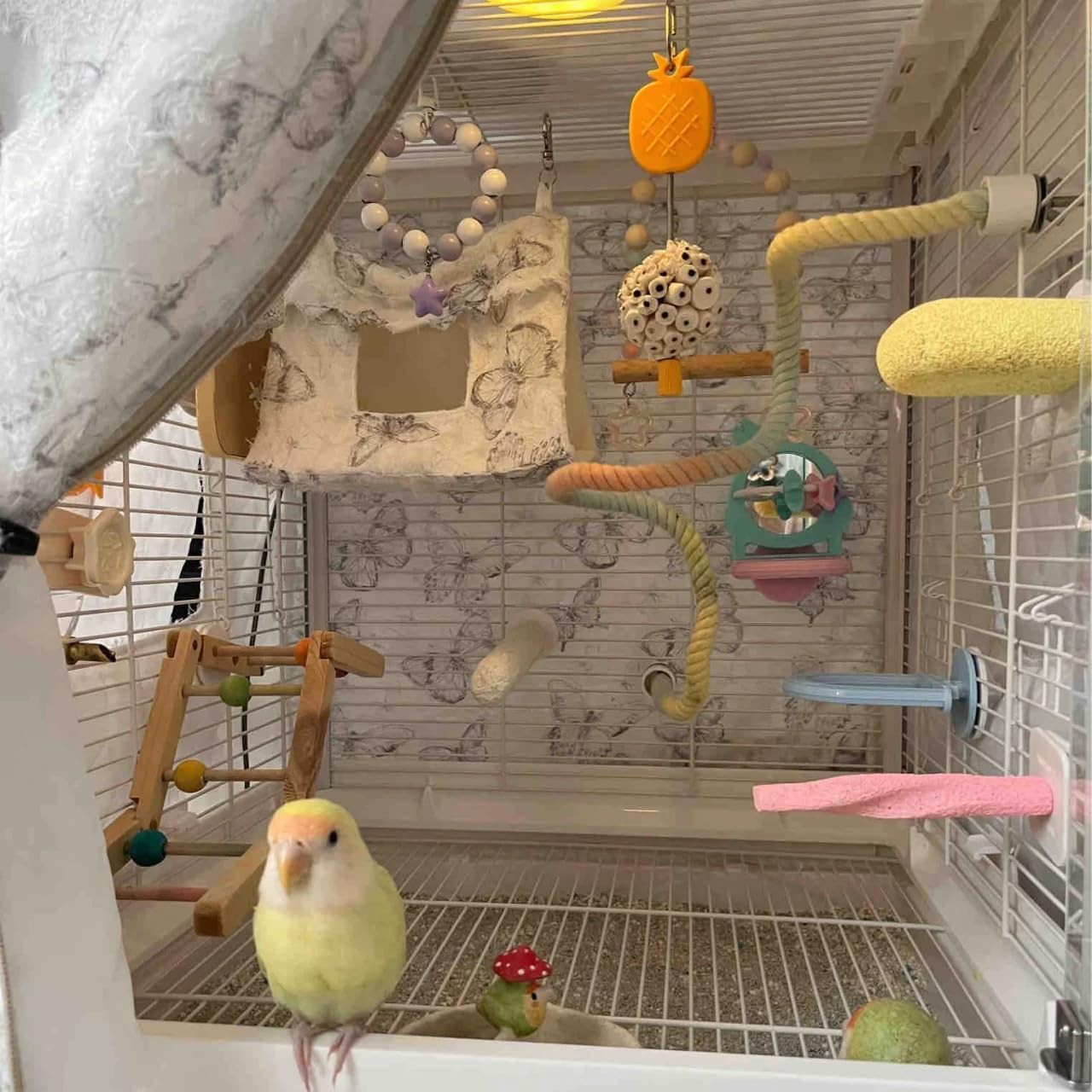 2 Pack Comfy Rope Perch for Parakeets, Bird Bungee Climbing Swing Pet Toy