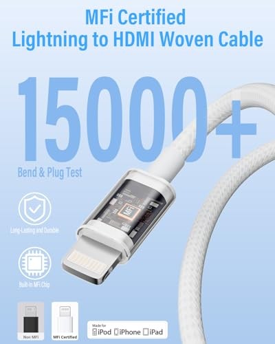 Apple MFi Certified Lightning to HDMI Cable Adapter 6.6 FT , Nylon Braided