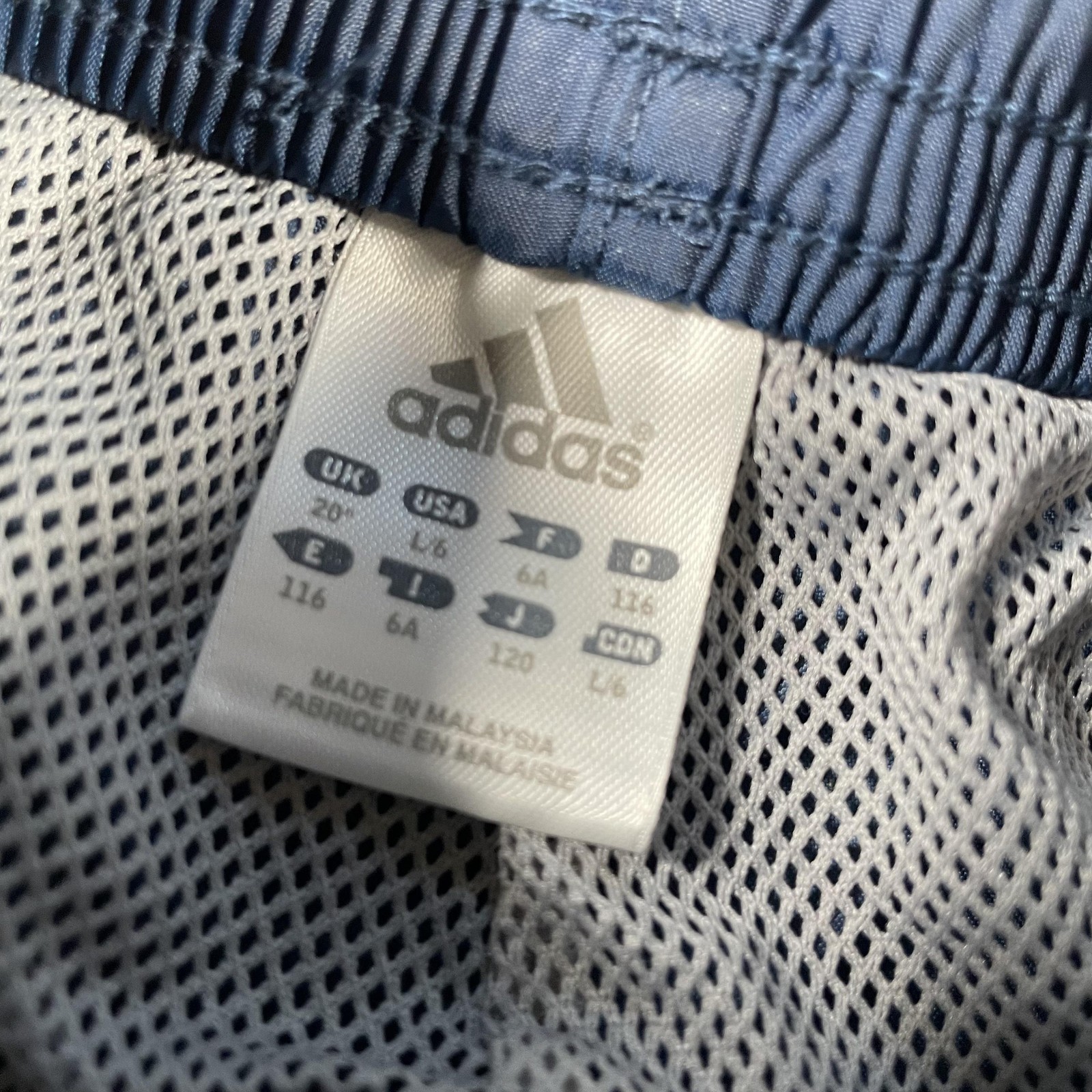 как выглядит Vintage Adidas Track Pants Kids 6 Blue 3 Stripes Nylon Mesh Windbreaker Y2K фото