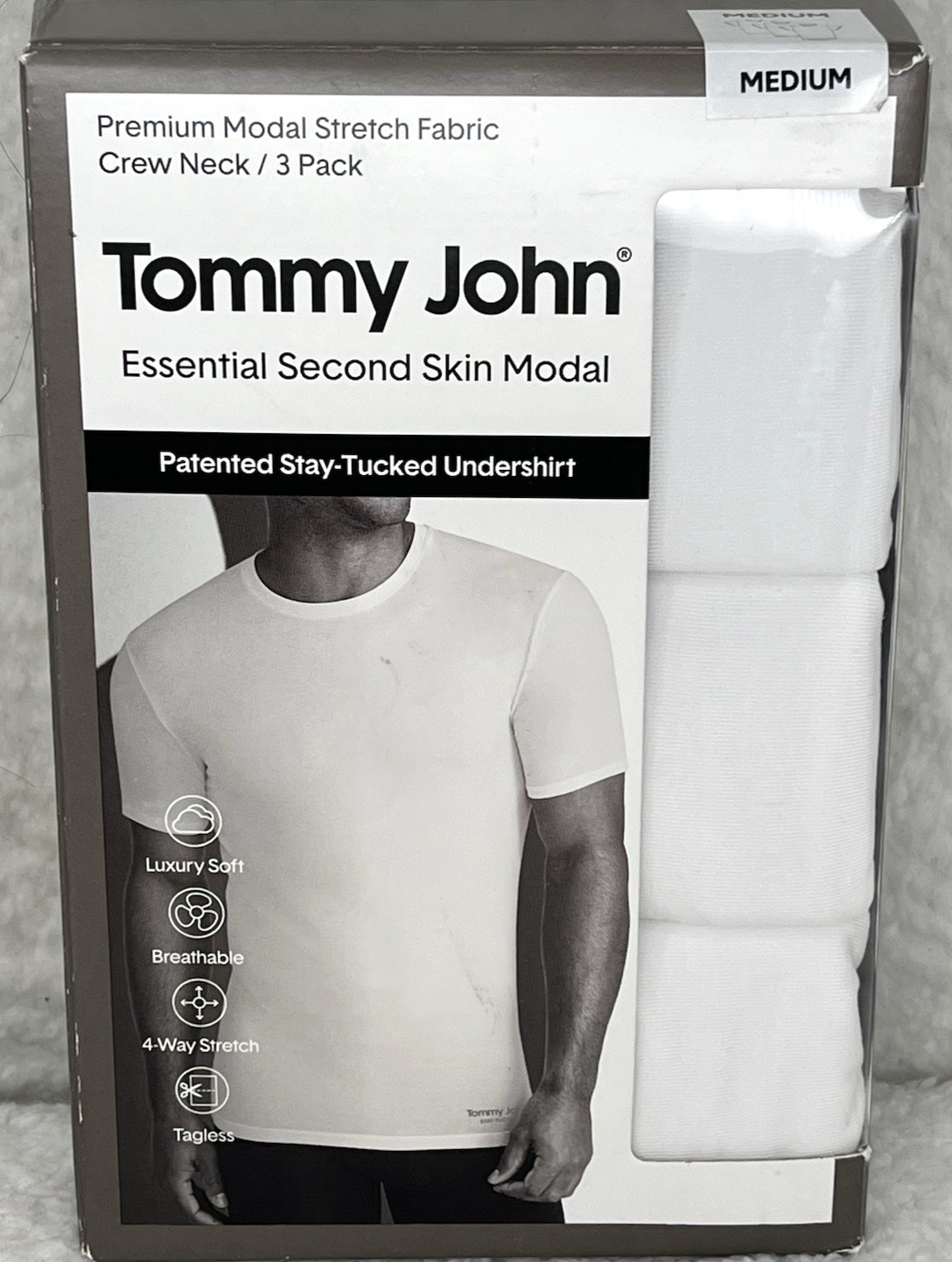 как выглядит Tommy John Mens T-Shirt SZ Medium 3-Pk White Essential Second Skin Modal Unde.. фото