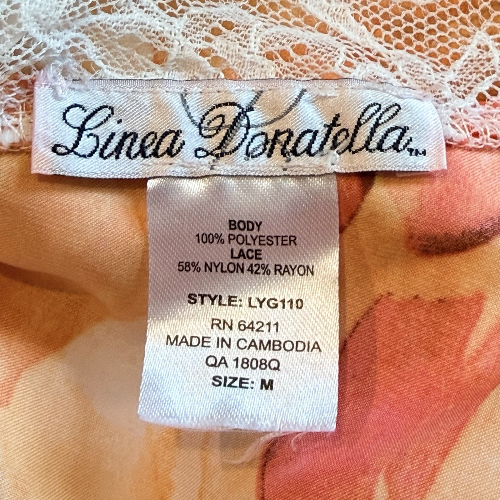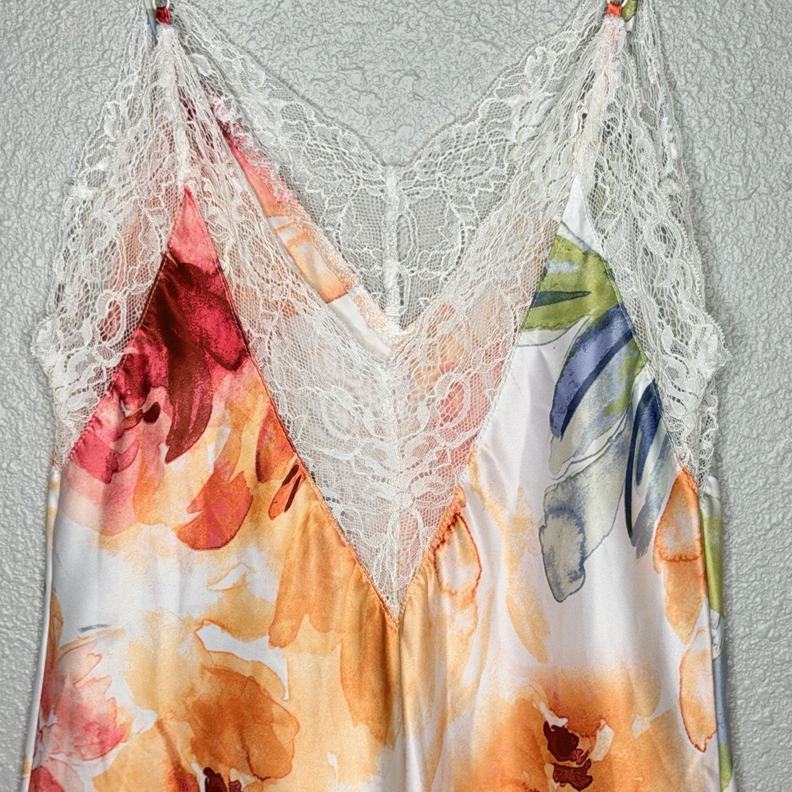 как выглядит Linea Donatella Floral Lace Trim Chemise Nightgown Slip Lingerie M Satin Soft фото