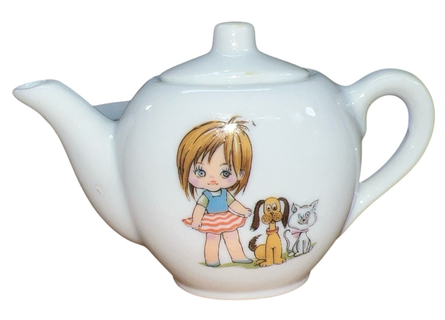 Vtg 11 Piece Miniature Childs Porcelain Tea Set Japan Mid Century Girl Dog Cat