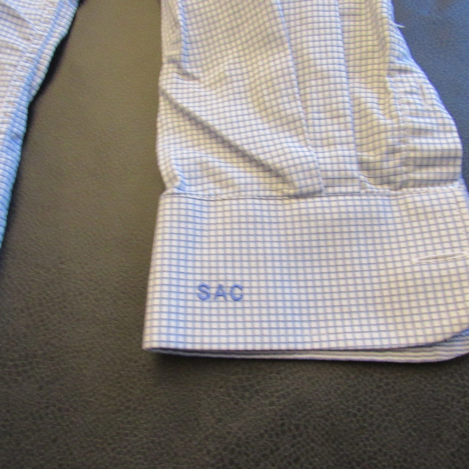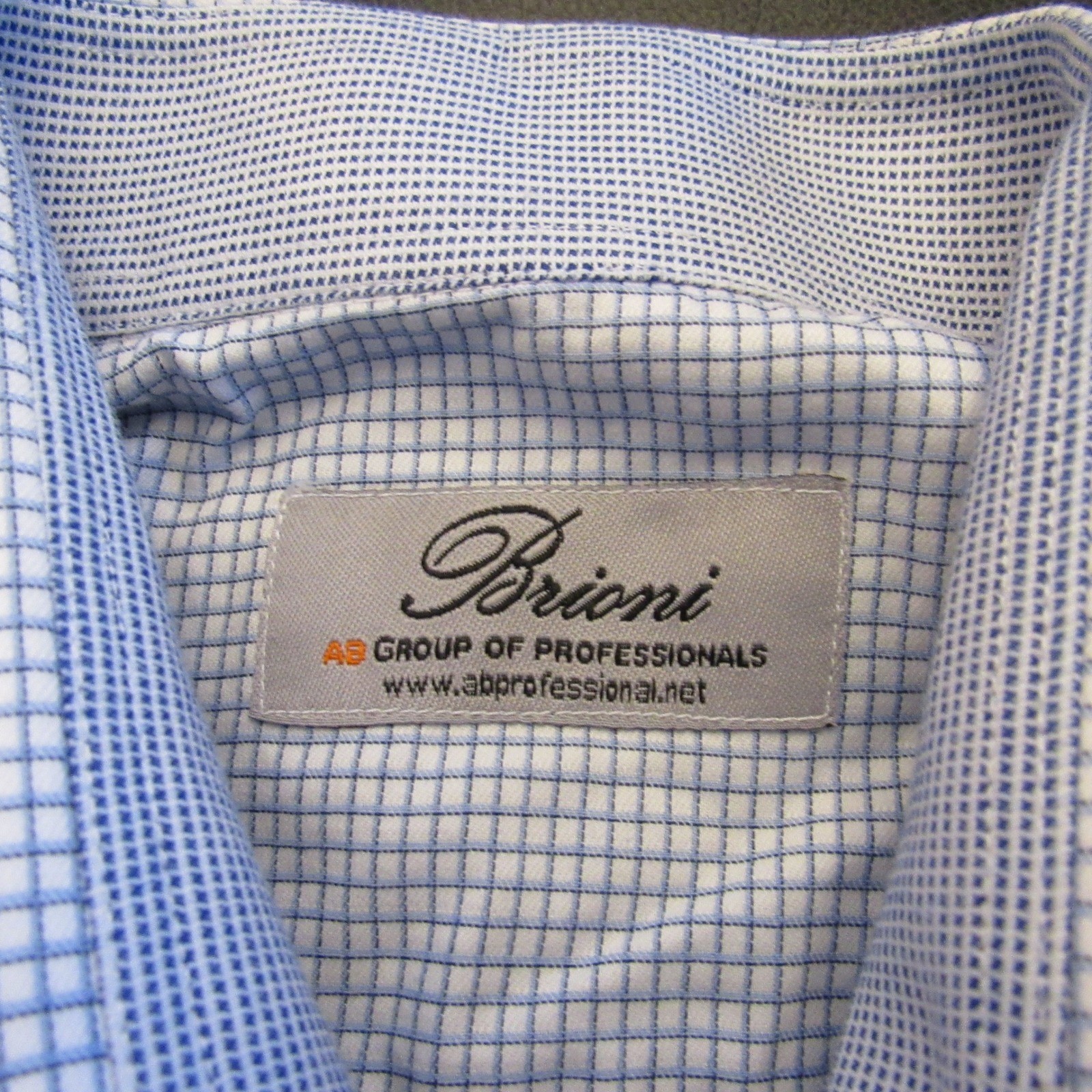 как выглядит Brioni Mens Blue White Micro Check Spread Collar Dress Shirt Monogrammed 23.5 фото