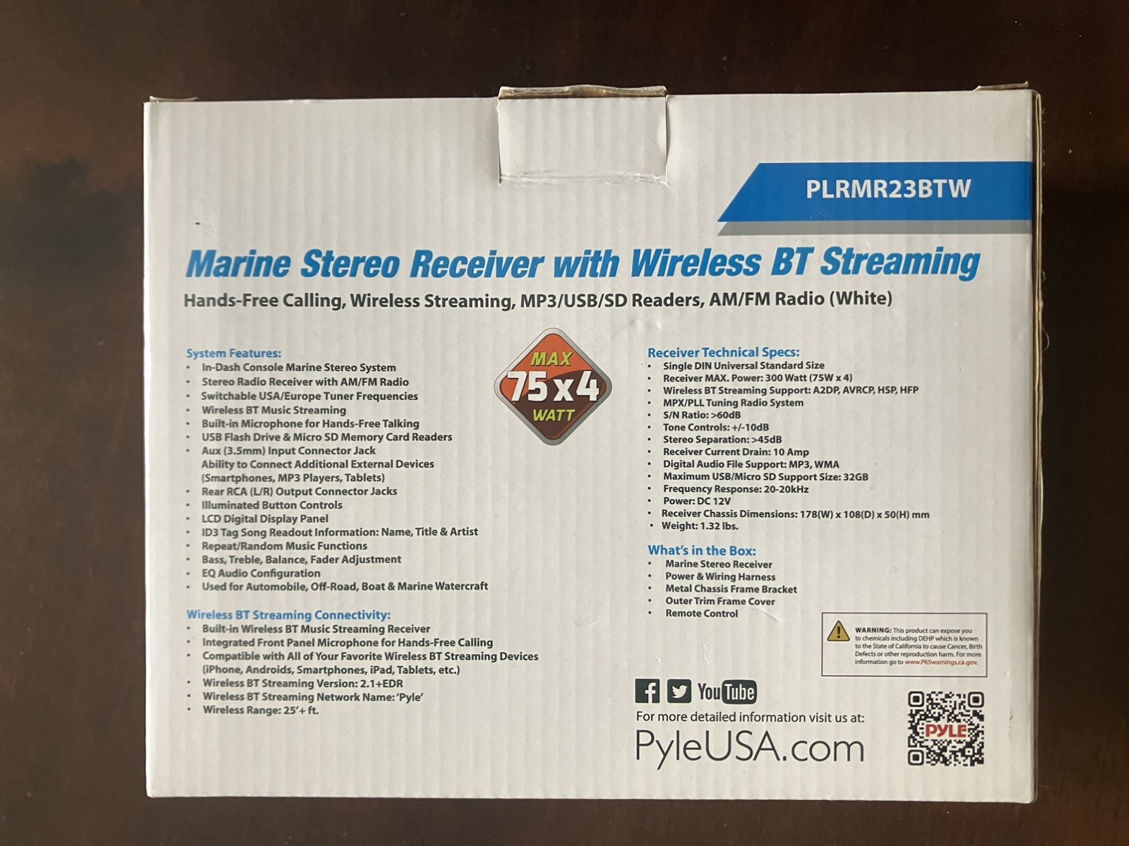 как выглядит Pyle Bluetooth Marine Receiver Stereo MP3/USB/SD Readers, AM/FM Radio PLRMR23BTW фото