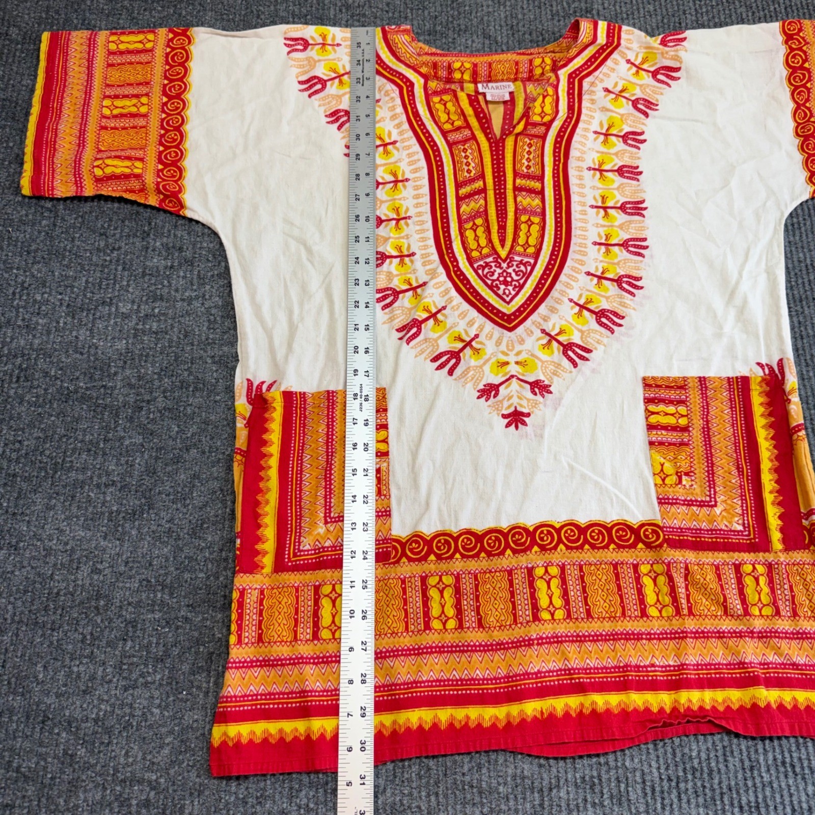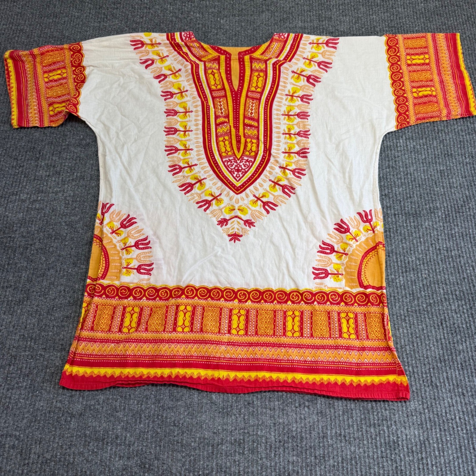 как выглядит Marine Dashiki Shirt Red Orange African Tribal Print Unisex Made in India фото