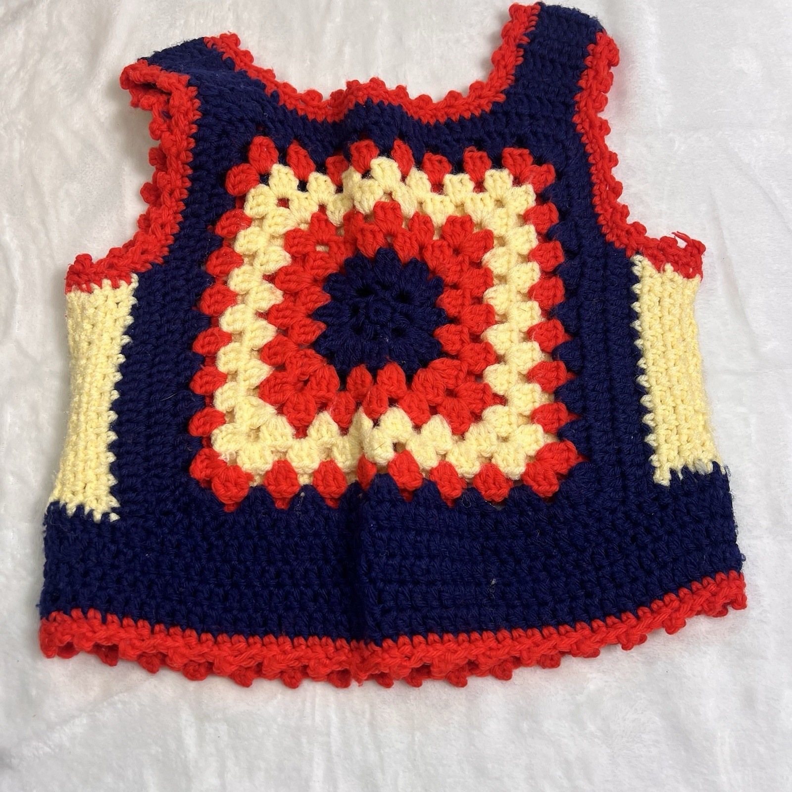 70s Vintage Crochet HIPPIE Child s Sweater Vest Shirt Granny Square Sz 6/8 S se