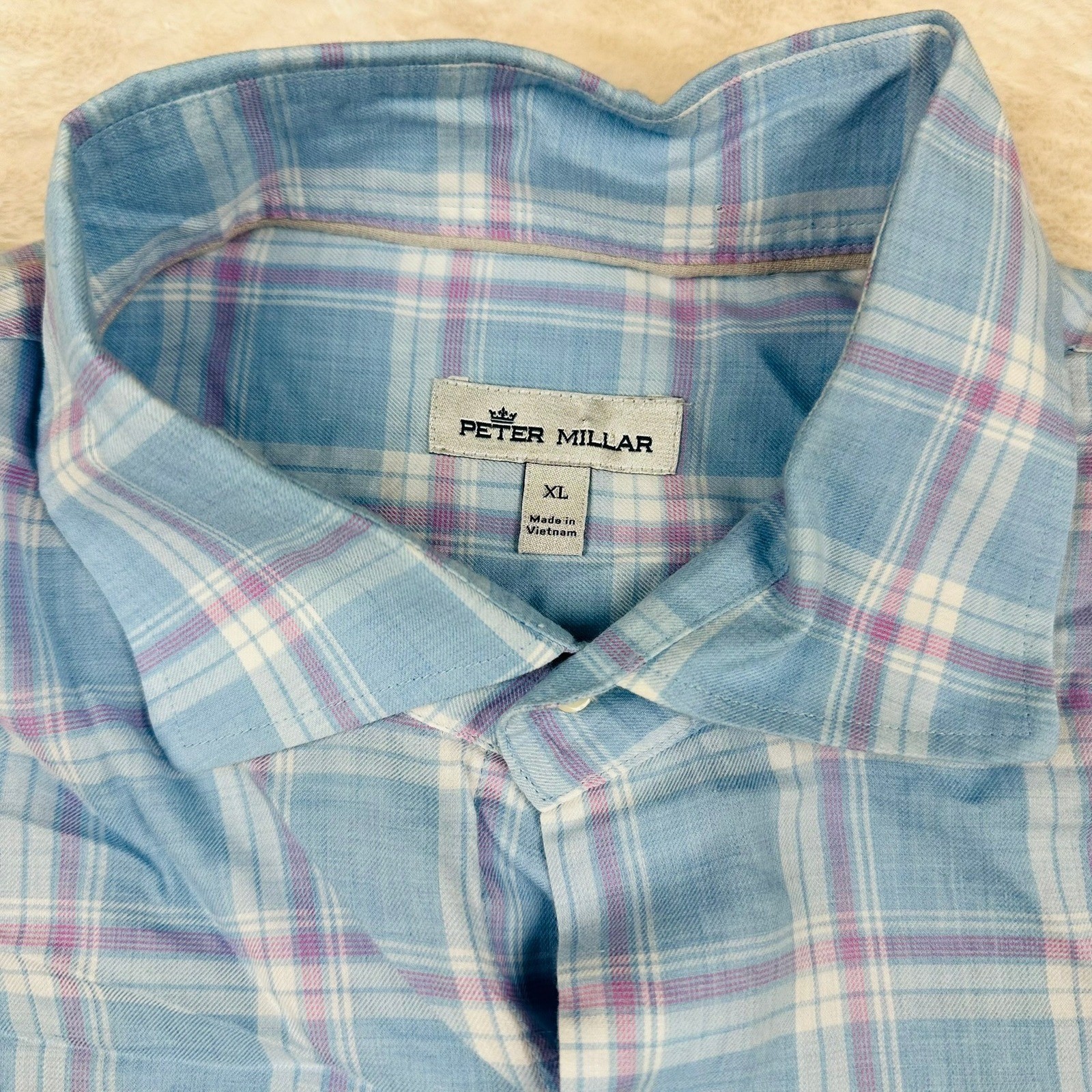 как выглядит Peter Millar Mens XL Blue Purple Plaid Long Sleeve Button Up Shirt Classic Fit фото