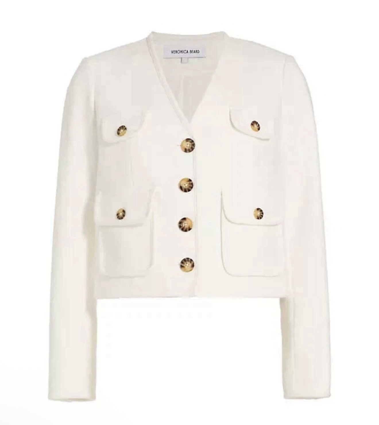 как выглядит Veronica Beard Women s Isola Stretch Cotton-Blend Jacket Off White Sz 14 NWT фото