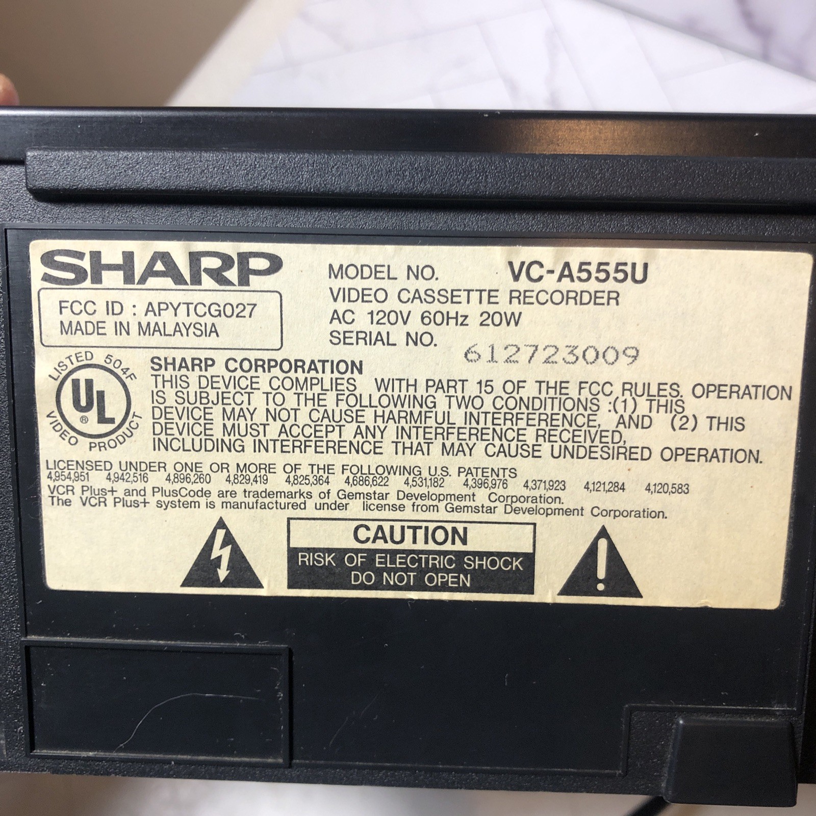 Sharp VC-A555U VCR 19 micron 4 Head HQ VHS Video Cassette Player Recorder Tested