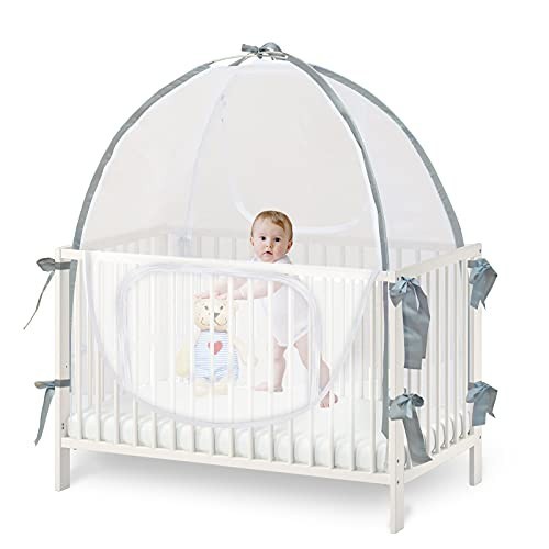 Baby Crib Tent Safety Net with Self-Locking Zippers, Insect Protection, Easy Ins