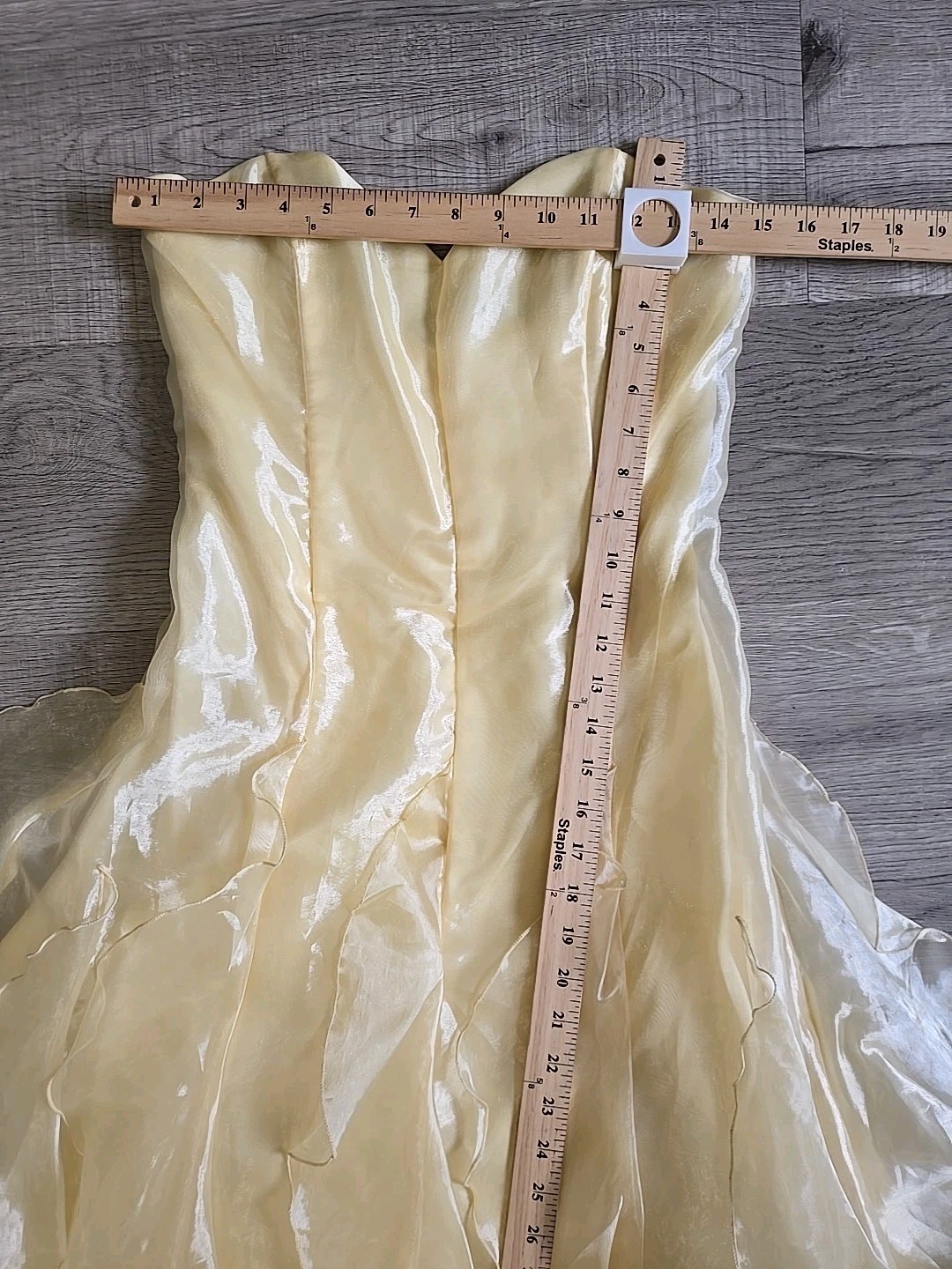 как выглядит Vtg Jessica McClintock Gunne Sax Dress Strapless Pale Yellow Satin Ball Gown 7/8 фото