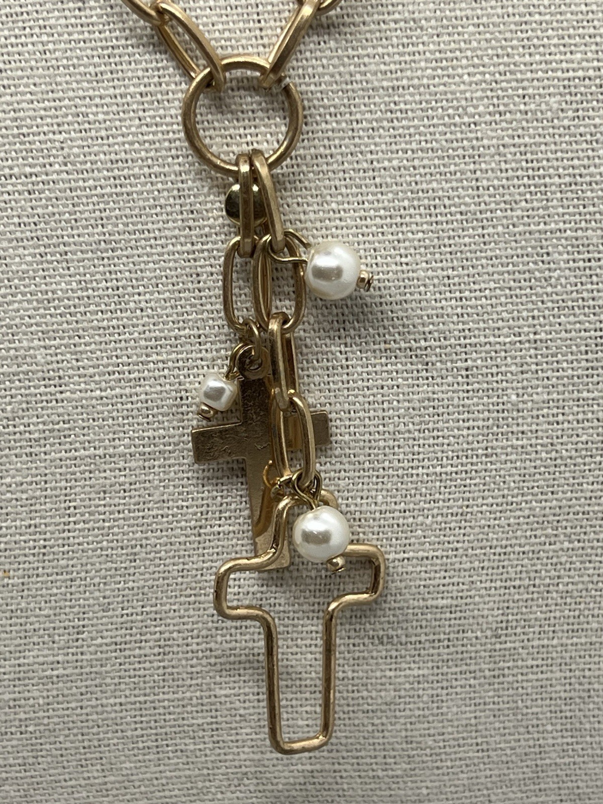 Paperclip Chain Necklace Cross Imitation Pearl Charms 17 Y Style Gold Tone