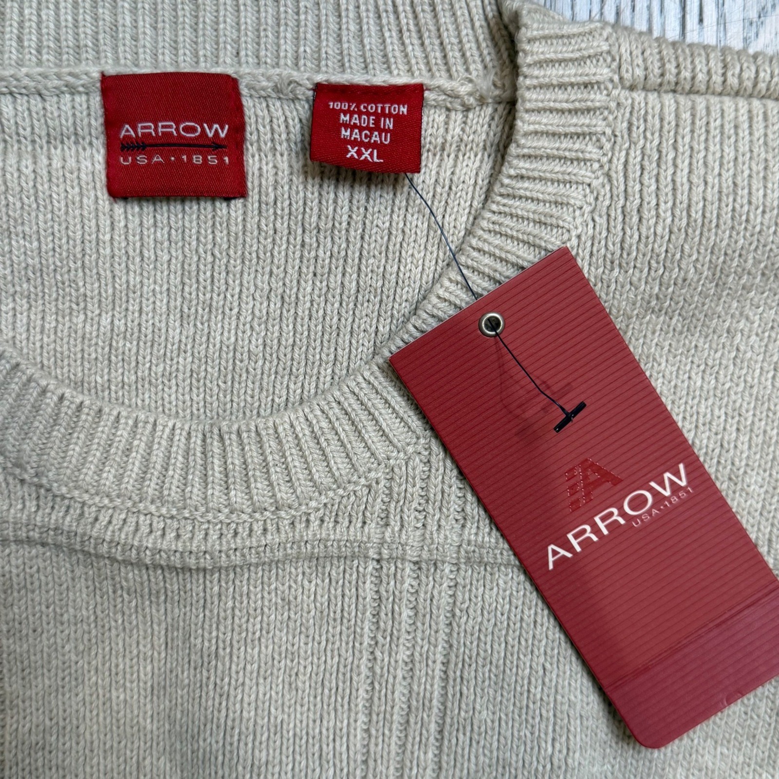 ARROW Men's Beige Grid Pattern Crew Neck Sweater XXL 100 Cotton