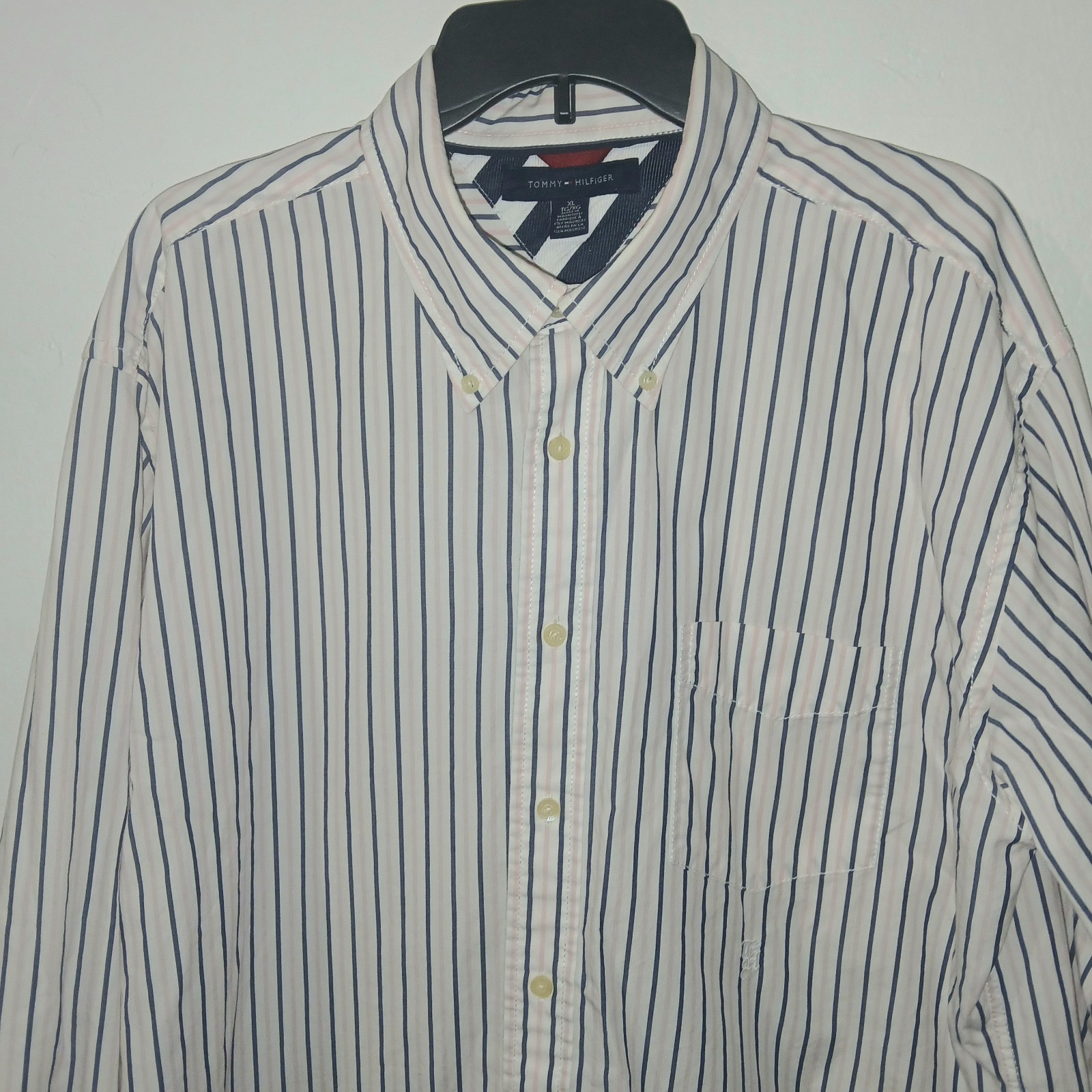 Tommy Hilfiger Men's Long Sleeve Button Down Dress Shirt XL White Pink Gray...