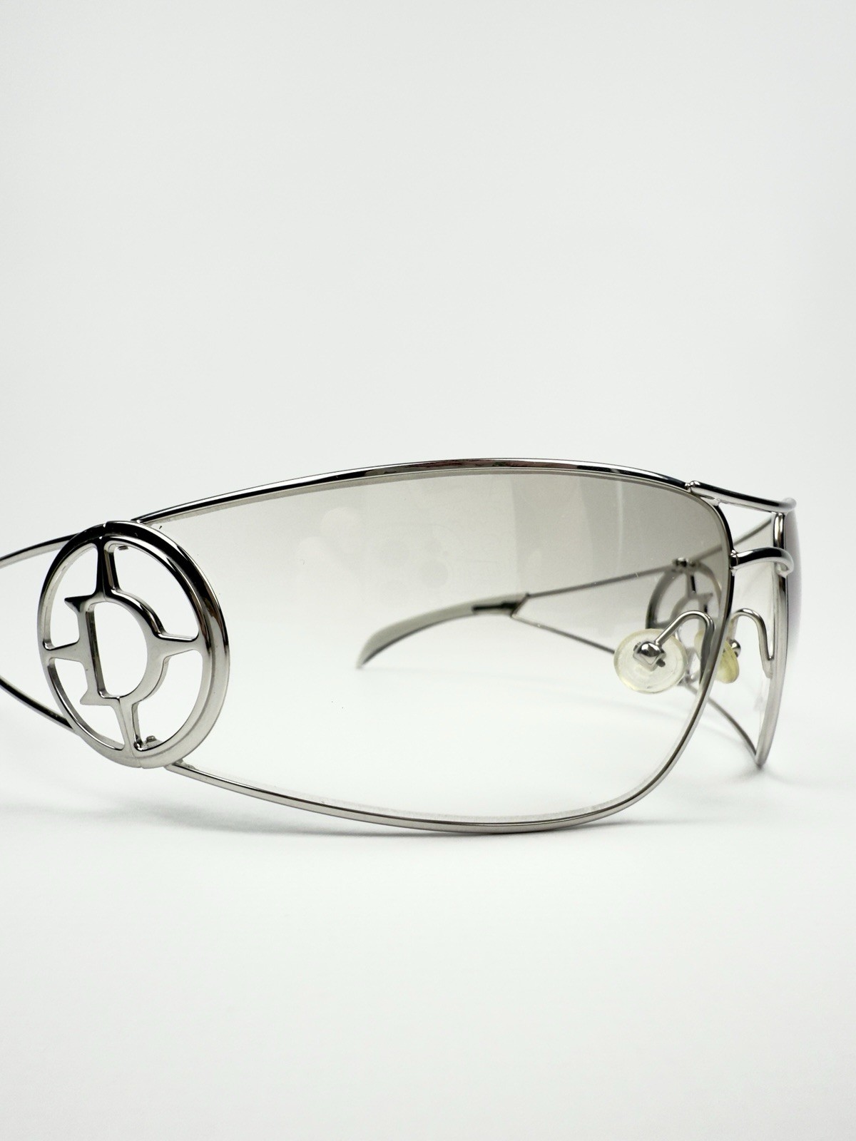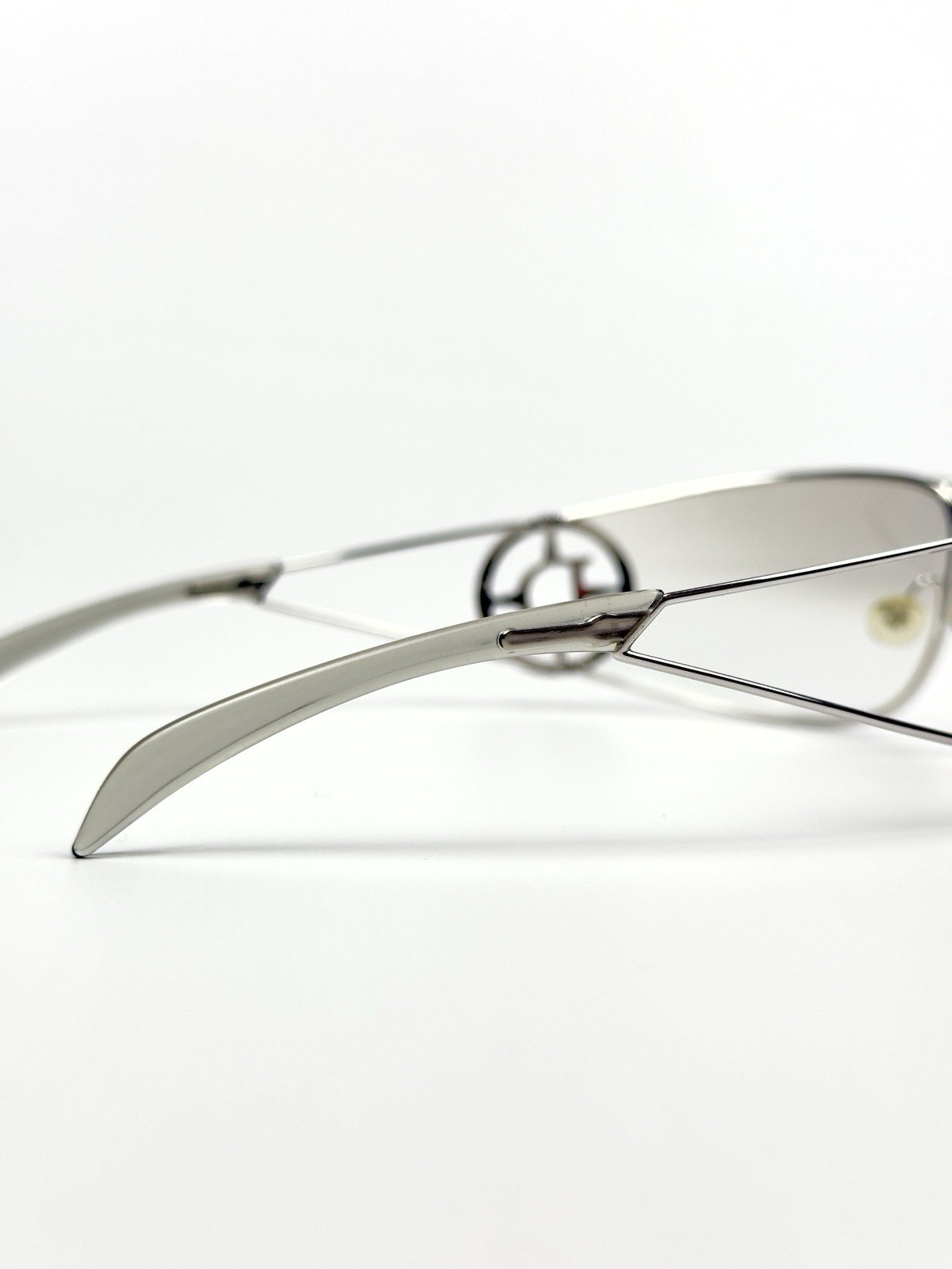Vintage Christian Dior Calandre Shield Sunglasses Shiny Silver NO FEES TO US