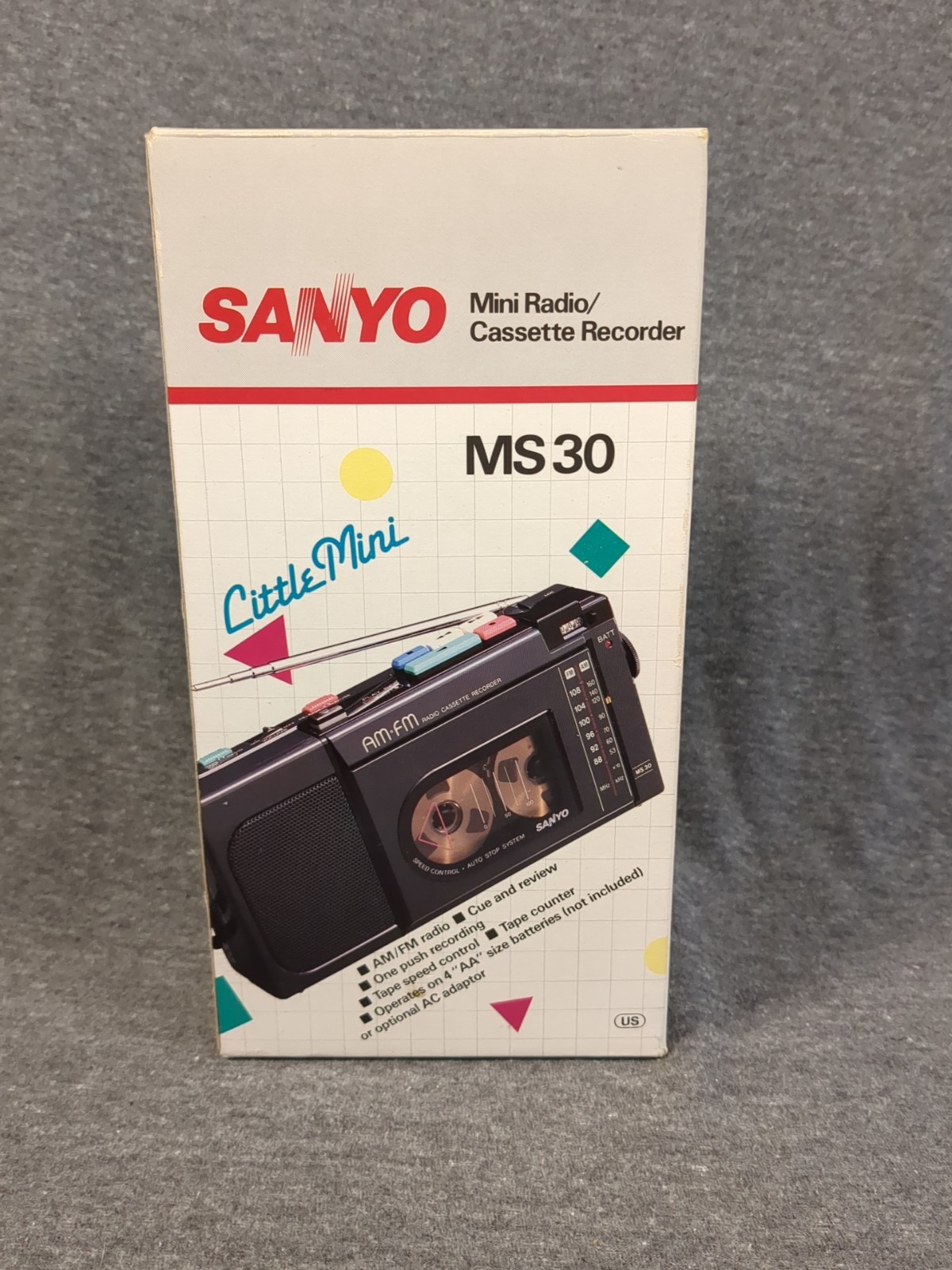 Sanyo MS30 Mini Radio Cassette Tape Recorder Player PARTS ONLY W/ BOX Powers On